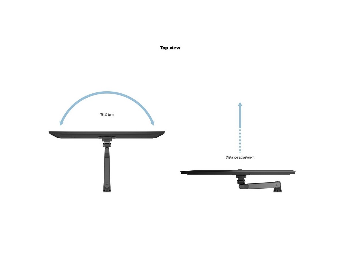 A double jointed gas suspended monitor arm, designed by Multibrackets to optimize your productivity and help reducing strain on neck, back and eyes.
