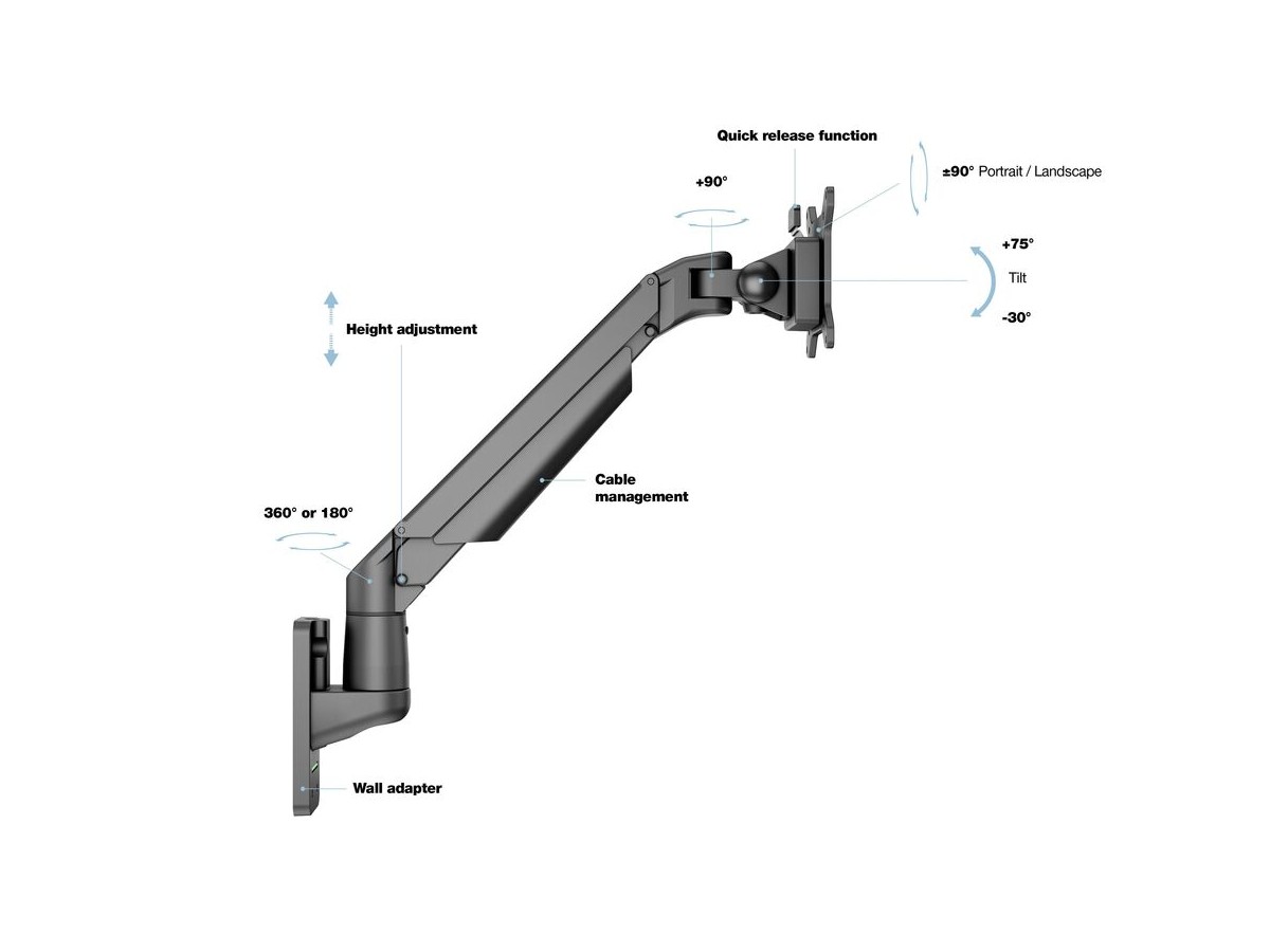 Product code:M VESA Gas Lift Arm Wall Basic Black - Mounting kit ( wall mount, tilt articulating arm ) for displays - aluminum - black - screen size: 15" - 32"
