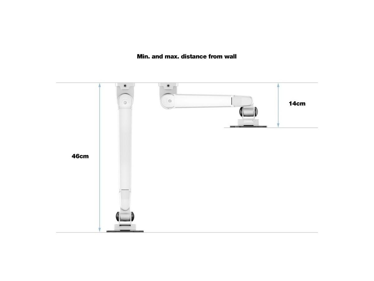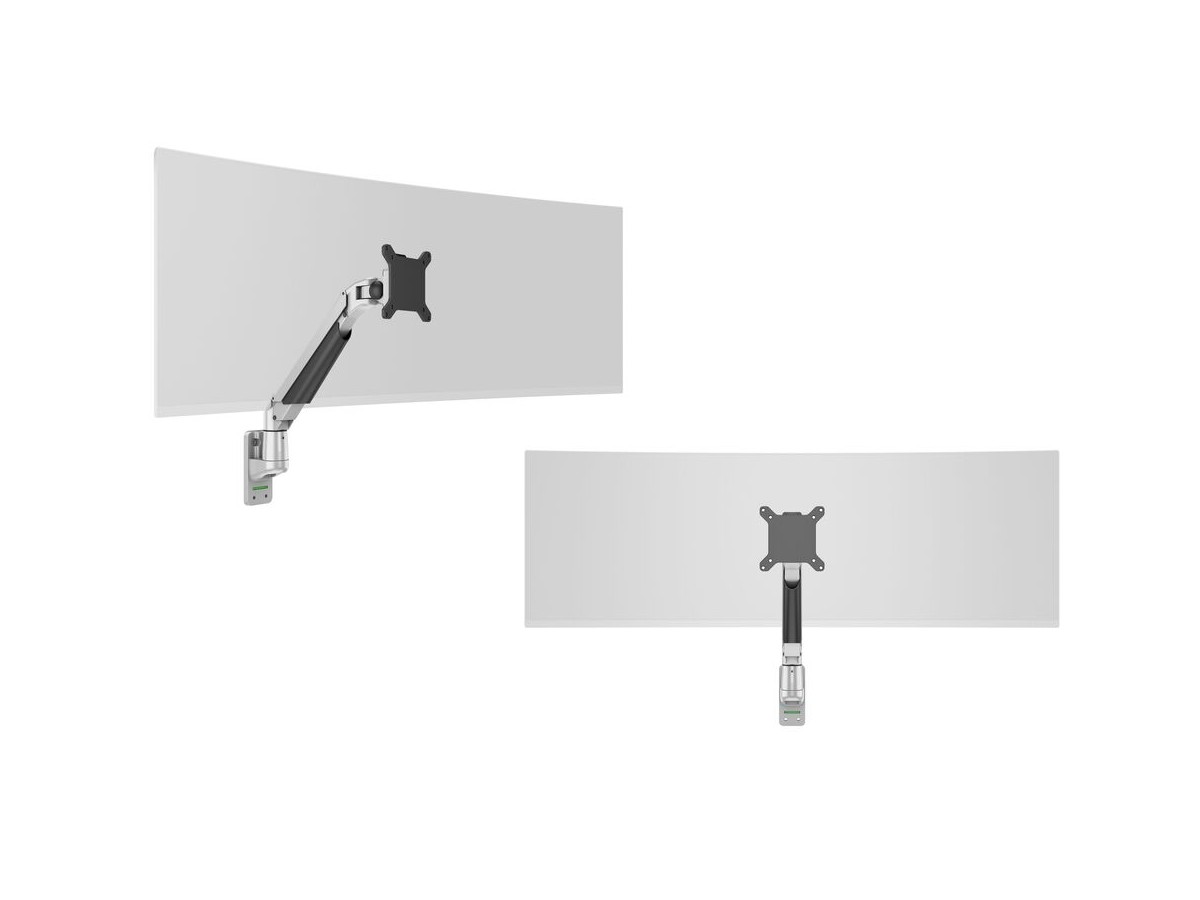 A double jointed gas suspended monitor arm, designed by Multibrackets to optimize your productivity and help reducing strain on neck, back and eyes.