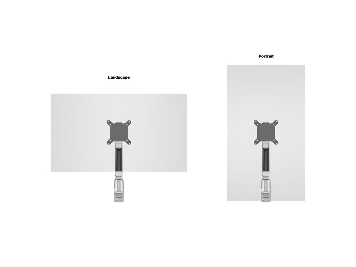The M VESA Gas Lift Arm is made out of a durable aluminum construction and uses a gas driven suspension technique. This makes the screen "float" and it can then be moved with near zero effort. Sleek and streamlined, the M VESA Gas Lift Arm frees up space and allows positioning of your display for greater productivity. The unique counterbalance gas technology provides smooth adjustment in any direction. Easy move the screen from landscape to portrait position or move the screen close to the desk, high up, matching almost any wanted working position imaginable.