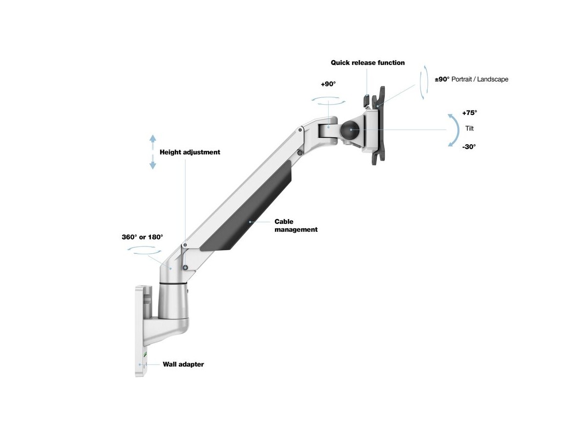 Product code:M VESA Gas Lift Arm Wall Basic Silver - Mounting kit ( wall mount, tilt articulating arm ) for displays - aluminum - silver - screen size: 15" - 32"