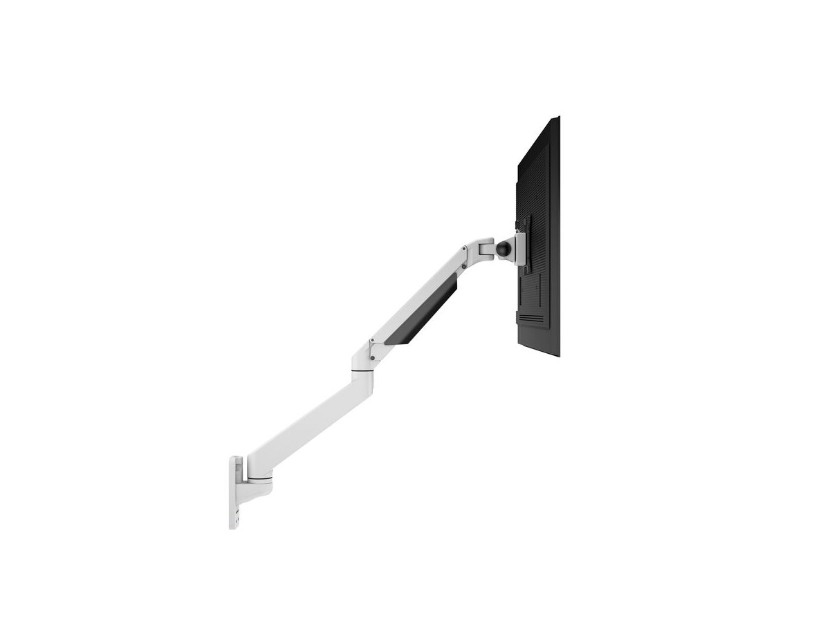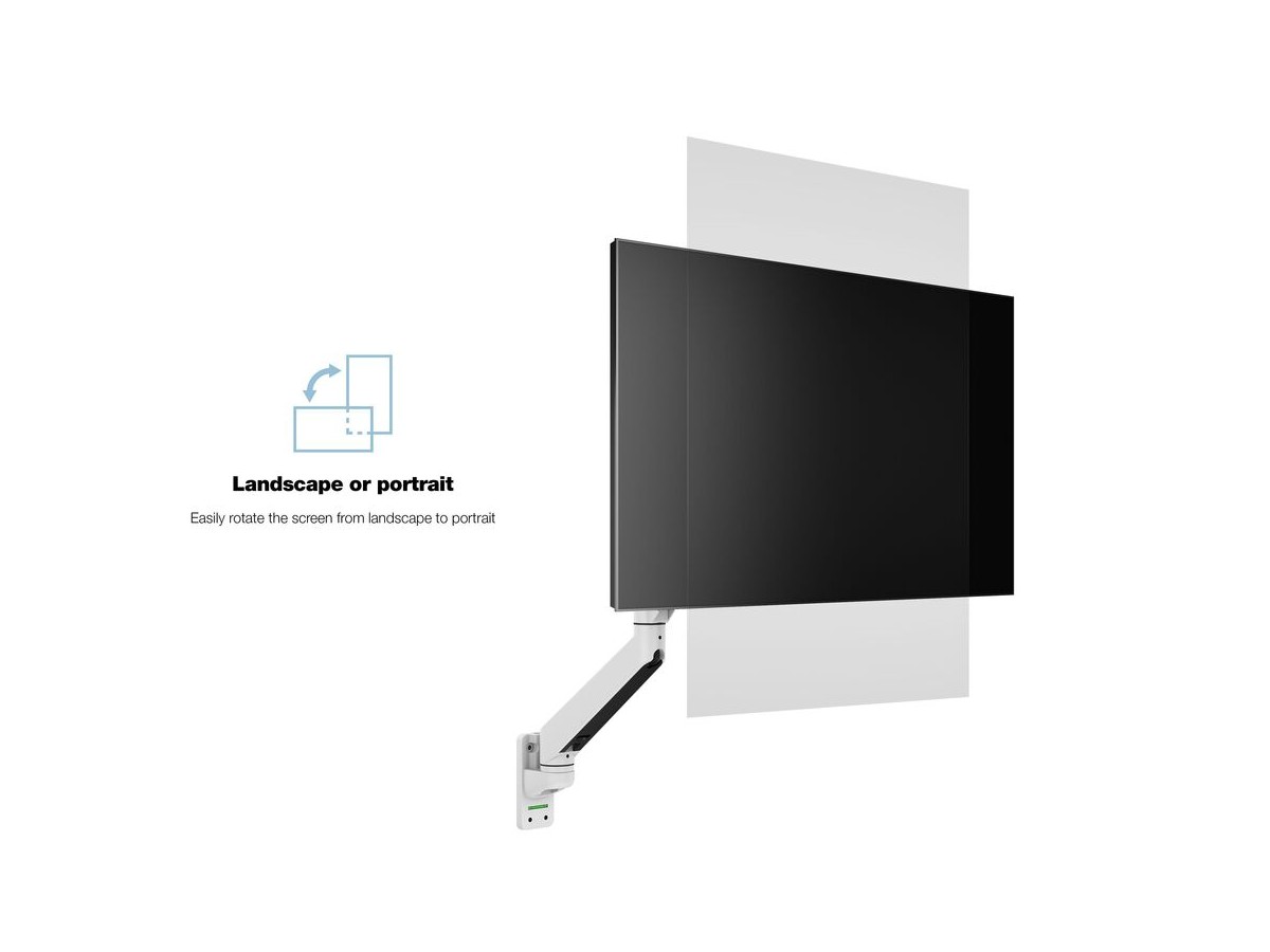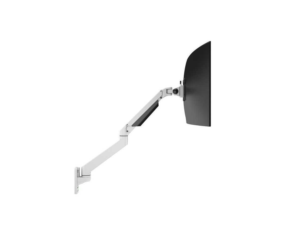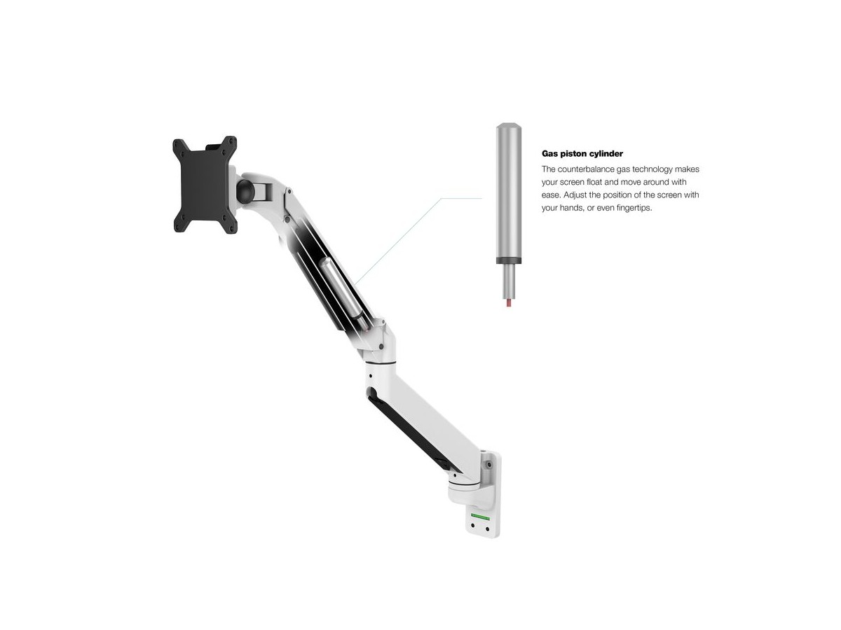Our M VESA Gas Lift Arm Single Wall is made out of a durable aluminum construction and uses a gas driven suspension technique. This makes the screen "float" and it can then be moved with near zero effort. Sleek and streamlined, the M VESA Gas Lift Arm Single Wall frees up space and allows positioning of your display for greater productivity. The unique counterbalance gas technology provides smooth adjustment in any direction. Easy move the screen from landscape to portrait position or move the screen close to the desk, high up, matching almost any wanted working position imaginable.