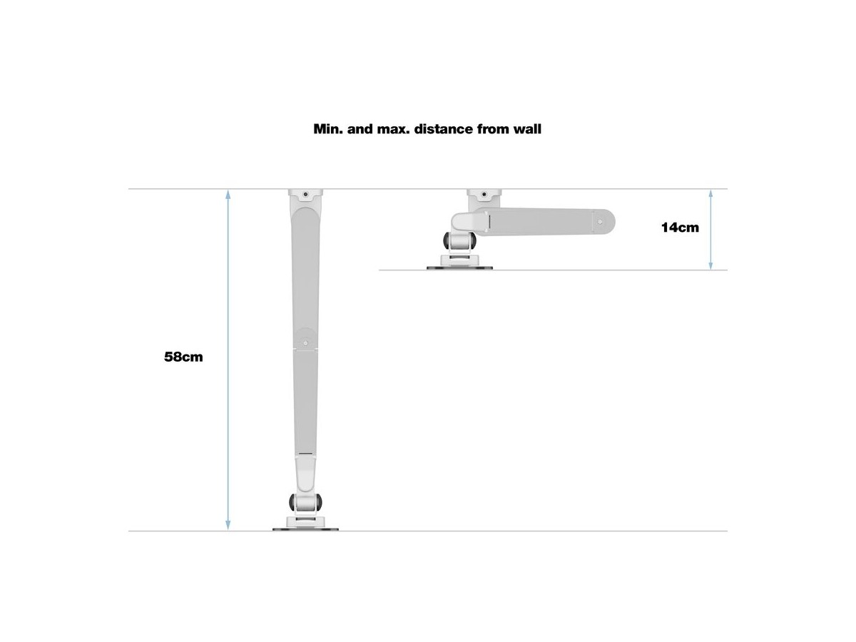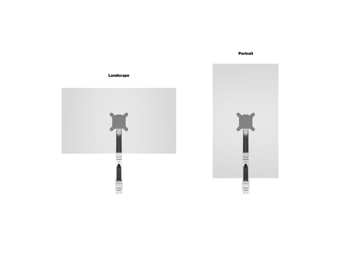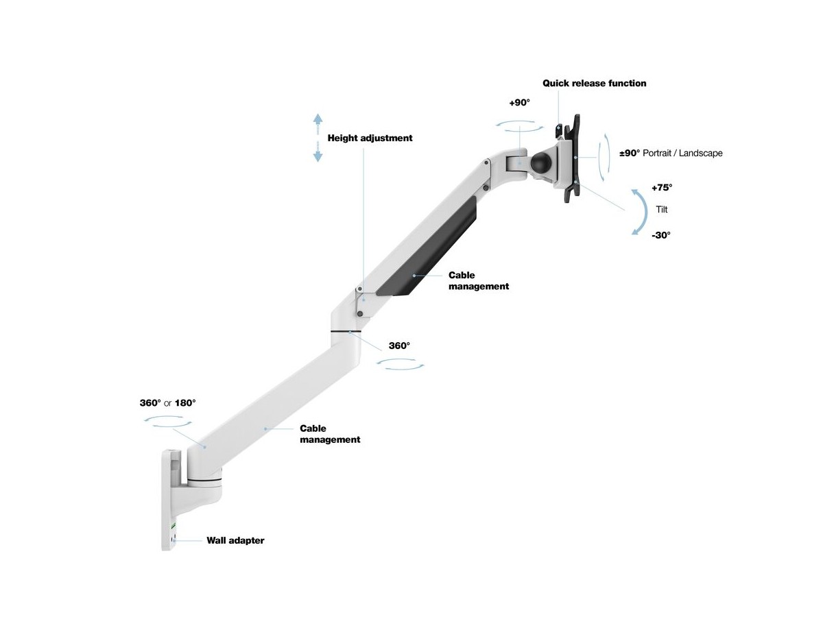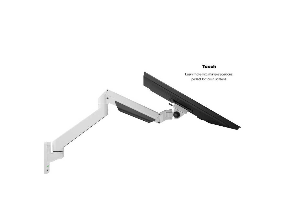 Our M VESA Gas Lift Arm Single Wall is made out of a durable aluminum construction and uses a gas driven suspension technique. This makes the screen "float" and it can then be moved with near zero effort. Sleek and streamlined, the M VESA Gas Lift Arm Single Wall frees up space and allows positioning of your display for greater productivity. The unique counterbalance gas technology provides smooth adjustment in any direction. Easy move the screen from landscape to portrait position or move the screen close to the desk, high up, matching almost any wanted working position imaginable.