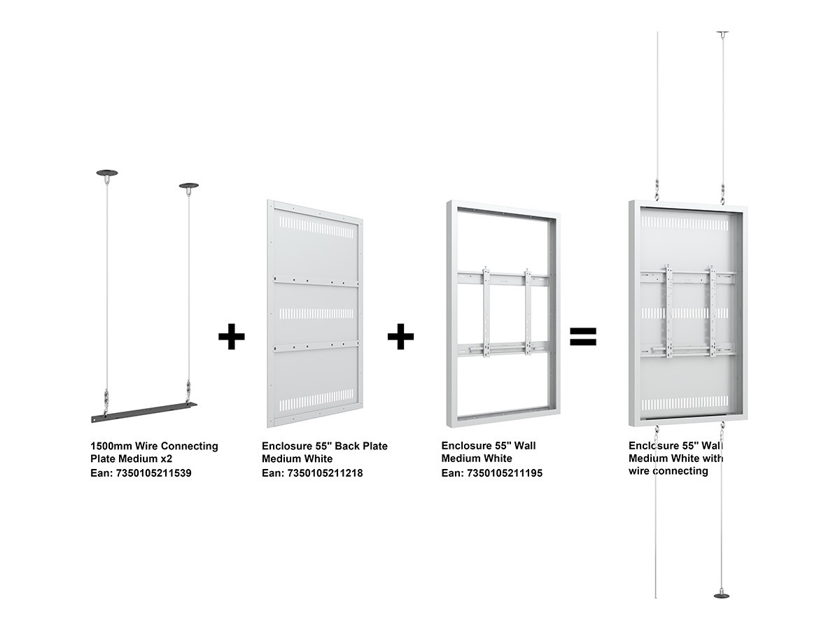The M Pro Series 1500mm Wire Connecting Plate Medium creates a possibility to mount the display and enclosure between floor and ceiling with discreet, yet safe solution.