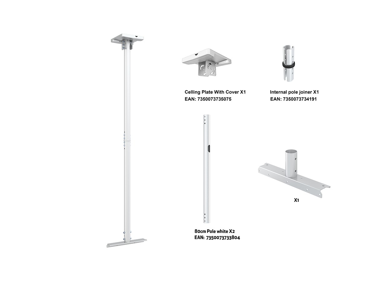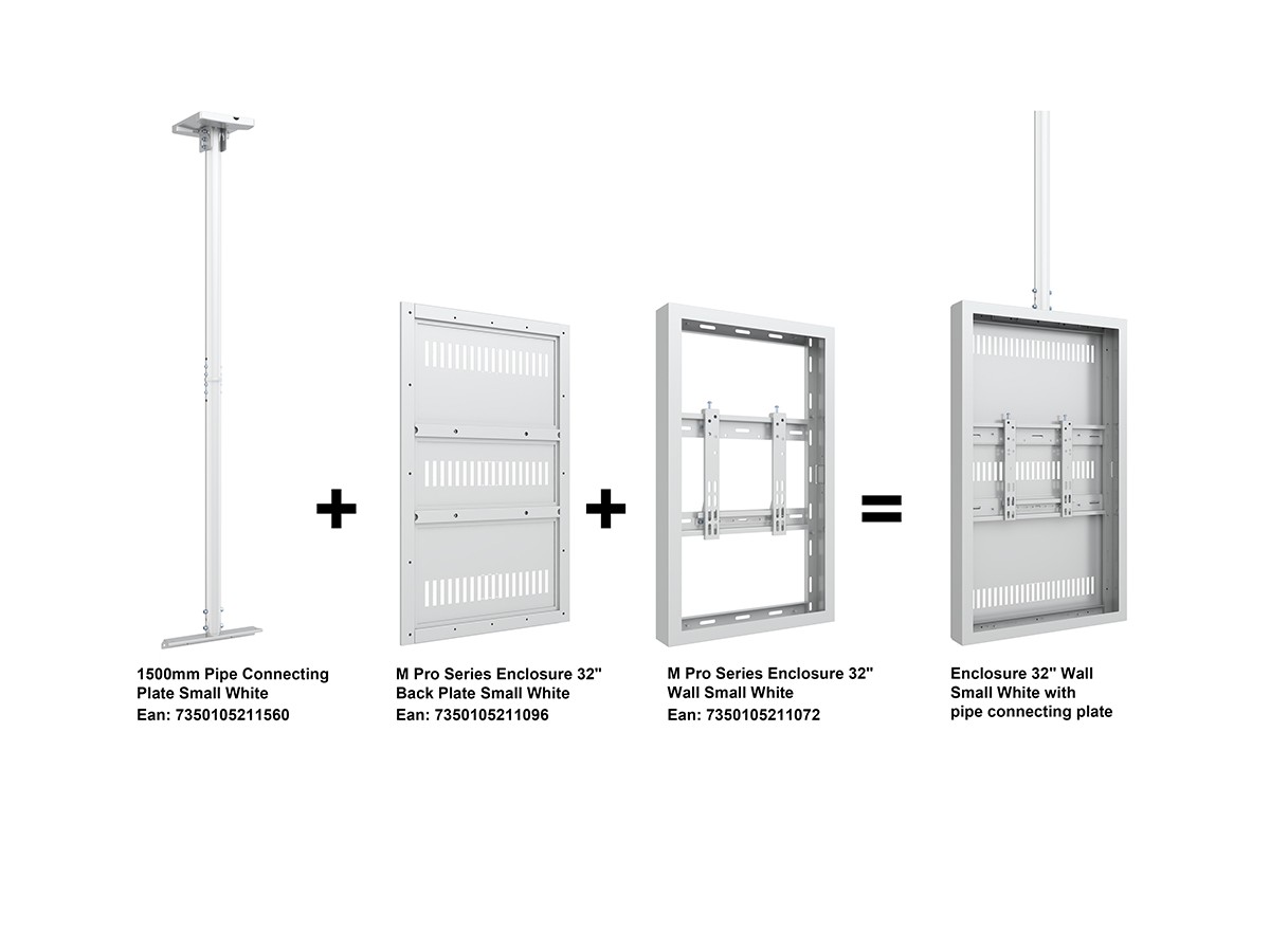 The M Pro Series - 1500mm Pipe Connecting Plate Small White creates a possibility to mount the display and enclosure in a ceiling that has even greater height.