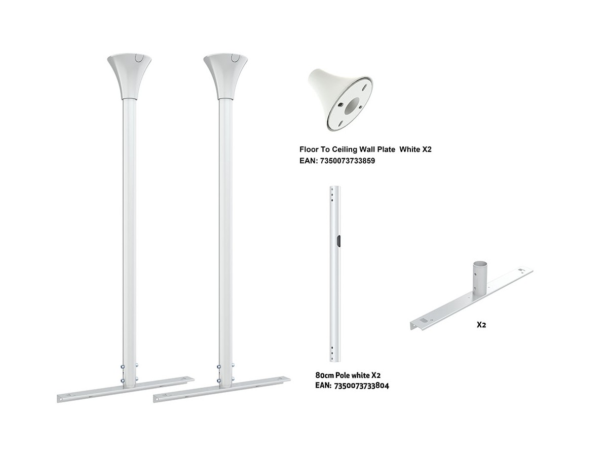 Product code:M Pro Series - Floor to Ceiling Kit Medium White - Floor to Ceiling mount kit for Enclosure 49-65”, steel, 1,5m length, 1 screen - screen size: 49" or 65" - white