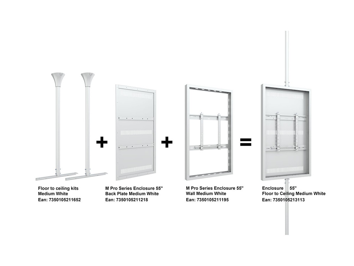 The M Pro Series - Floor to Ceiling Kit Medium White creates a possibility to mount the display and enclosure in a ceiling that has even greater height.