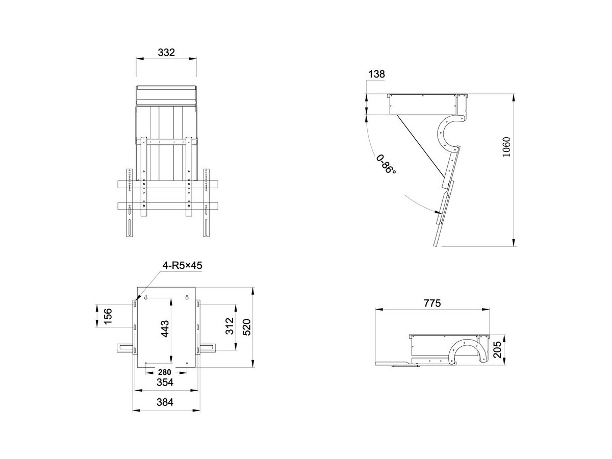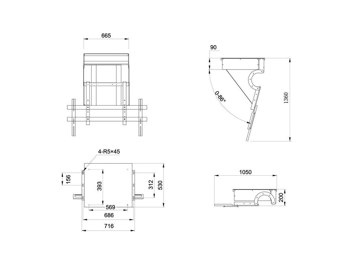 | VESA standard: | 200x200, 300x300, 400x400, 600x600, 900x600mm |