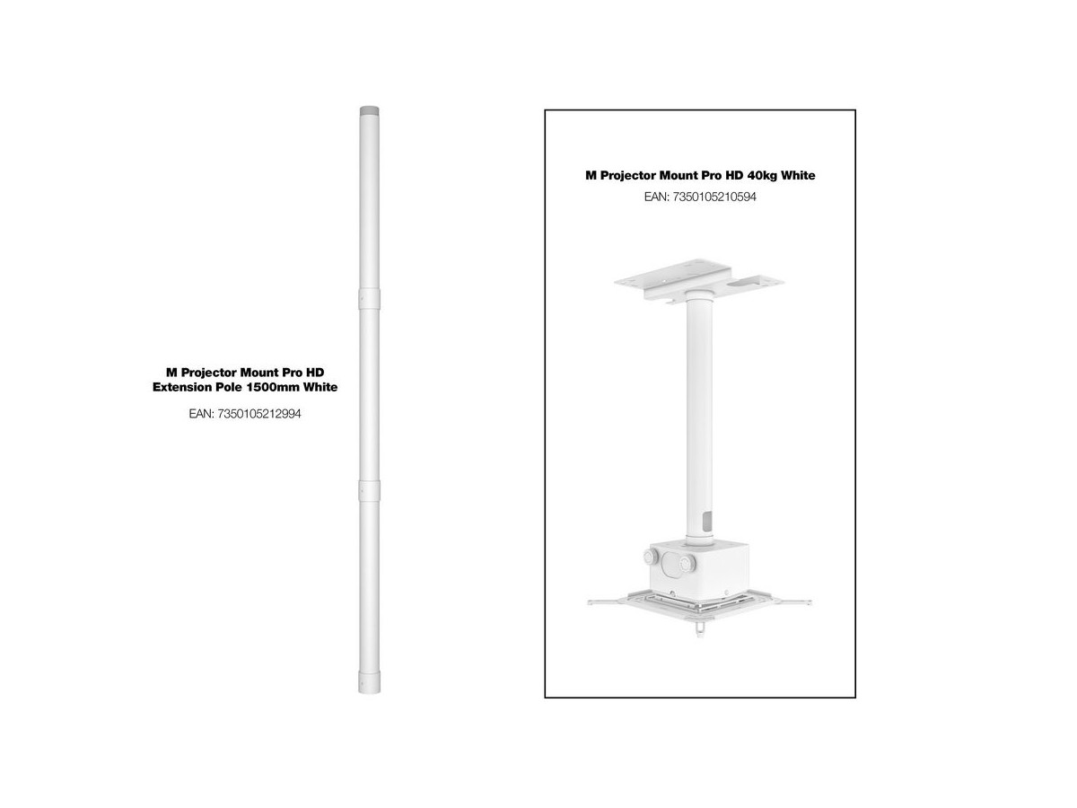 Product code:M Projector Mount Pro HD White - Extension Poles 3 x 500mm - Multibrackets M Extension Pipe - Mounting component for Projector Mount - steel - white
