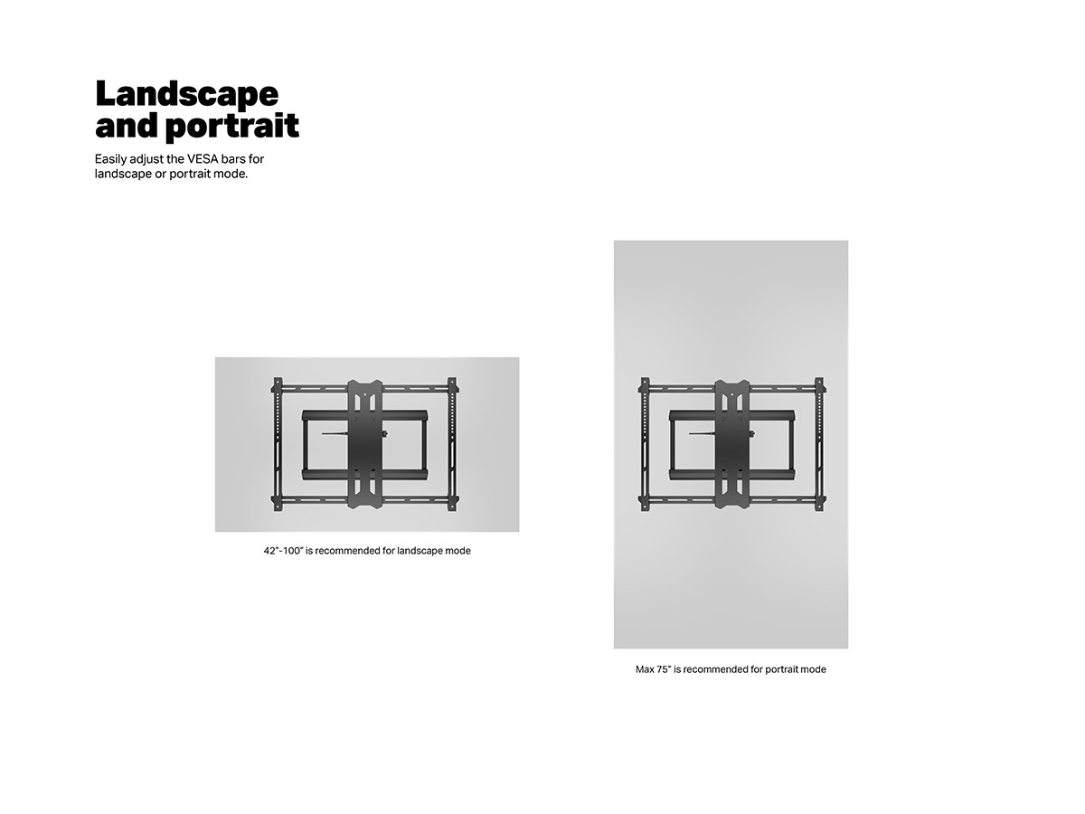 - Universal VESA supports 200x100, 400x200, 400x400, 700x500