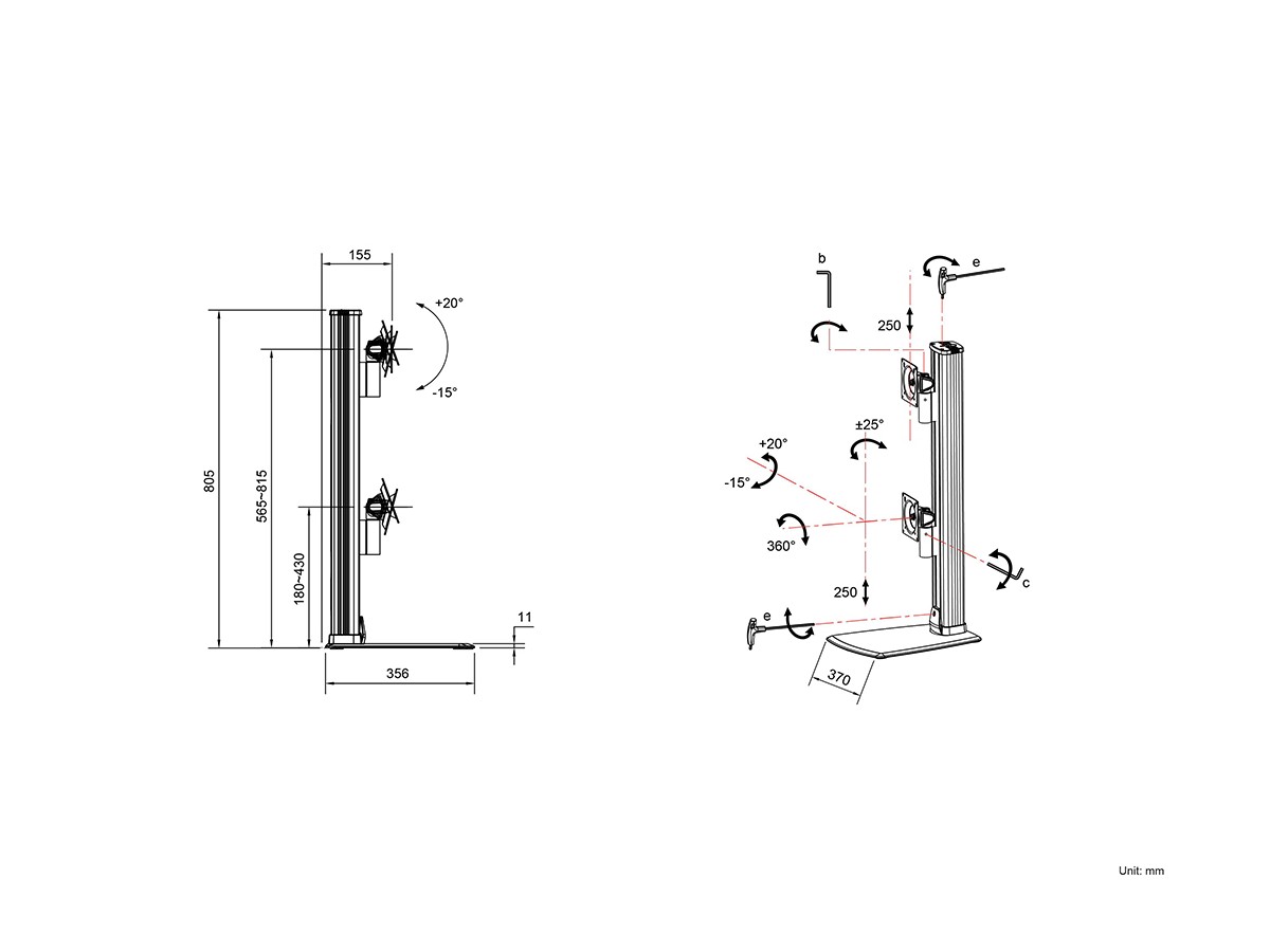 M VESA Tablestand HD Dual Vertical Widescreen 32" - 57" works with almost all LCD screens on the market supporting VESA standards of 75/100mm holding screens weight up to 24 kg each, height of pillar is 800 mm allowing two screens.