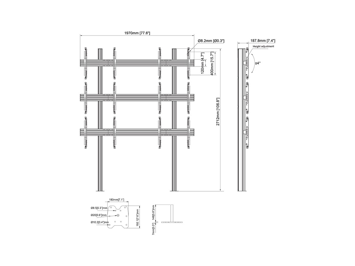 Multibrackets 7350105213410 M Floormount Column Pro 2x3 MBFM2x3U 270 Micro Adjustable