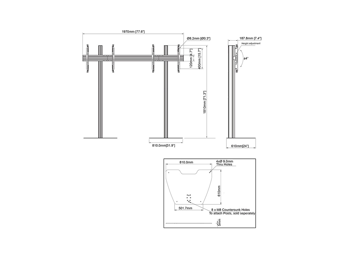 The Multibrackets Pro Series Video Wall Stands are suitable if you are after a videowall in a freestanding environment. As this is the Multibrackets Pro Series it’s all modular and could be rebuilt for any updated purpose after time. This video wall floor stand kit is suitable for screens up to 65” displays with a maximum weight of 30kg per display. The Pro Series modular system is quick and easy to install. Micro adjustable Fine Tune adjustment VESA brackets and interface plates helps you create a perfect video wall. With the fine tune functionality, you can easily align any screen on the X, Y and Z axis. Even after installation. All displays remain easily accessible for maintenance purpose.