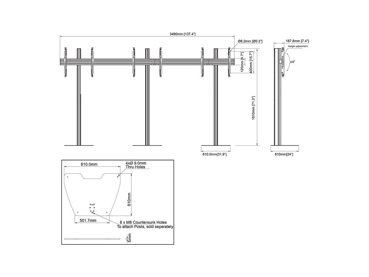 The Multibrackets Pro Series Video Wall Stands are suitable if you are after a videowall in a freestanding environment. As this is the Multibrackets Pro Series it’s all modular and could be rebuilt for any updated purpose after time. This video wall floor stand kit is suitable for screens up to 65” displays with a maximum weight of 30kg per display. The Pro Series modular system is quick and easy to install. Micro adjustable Fine Tune adjustment VESA brackets and interface plates helps you create a perfect video wall. With the fine tune functionality, you can easily align any screen on the X, Y and Z axis. Even after installation. All displays remain easily accessible for maintenance purpose.
