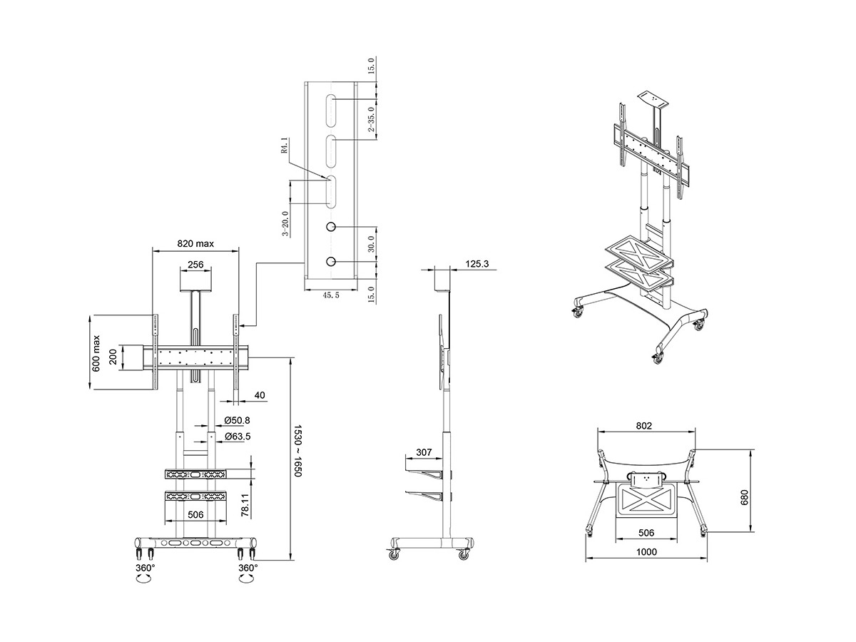 | Accessories: | Dual AV shelves and single Camera holder included |