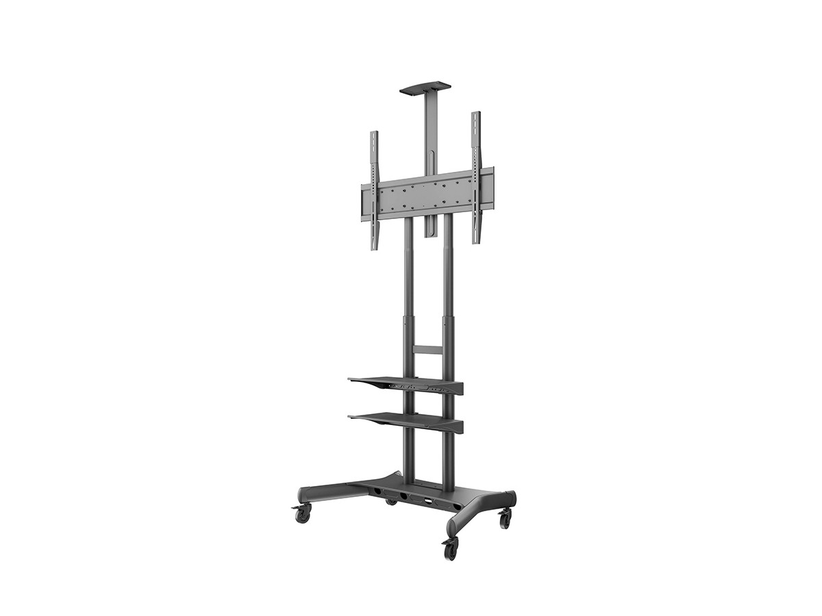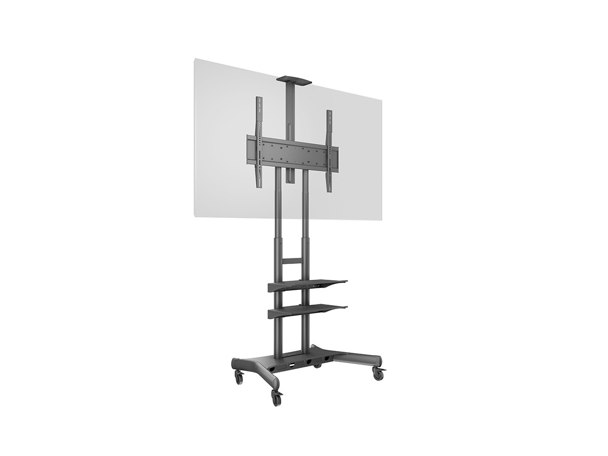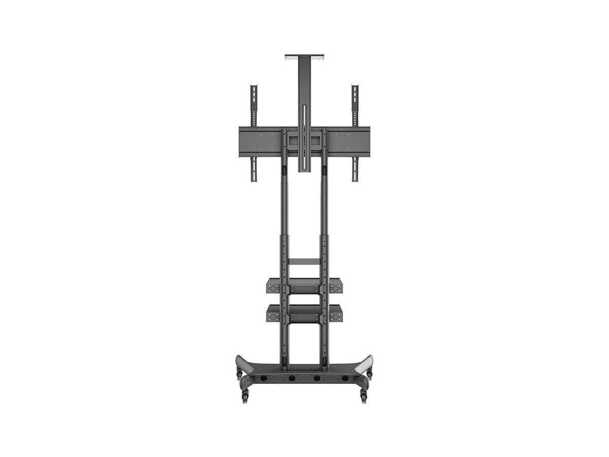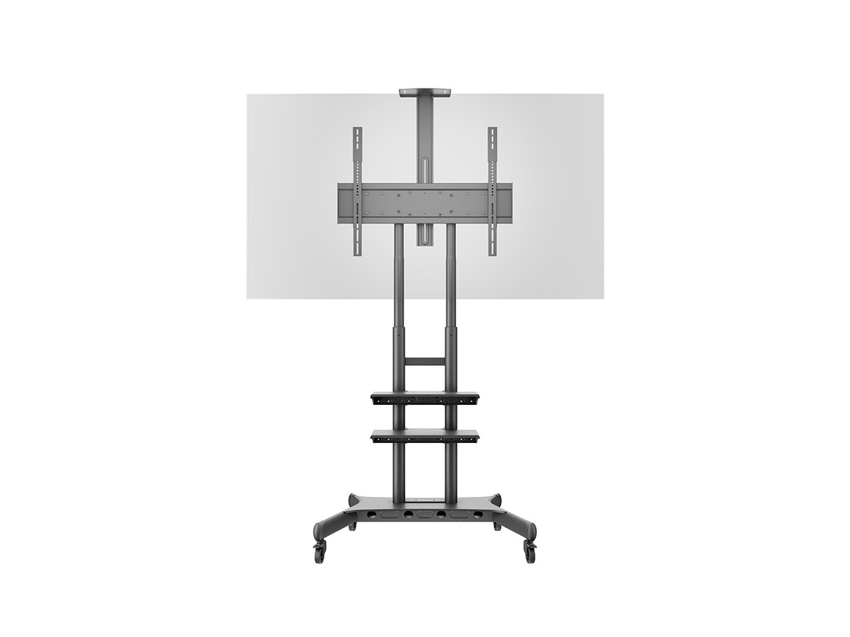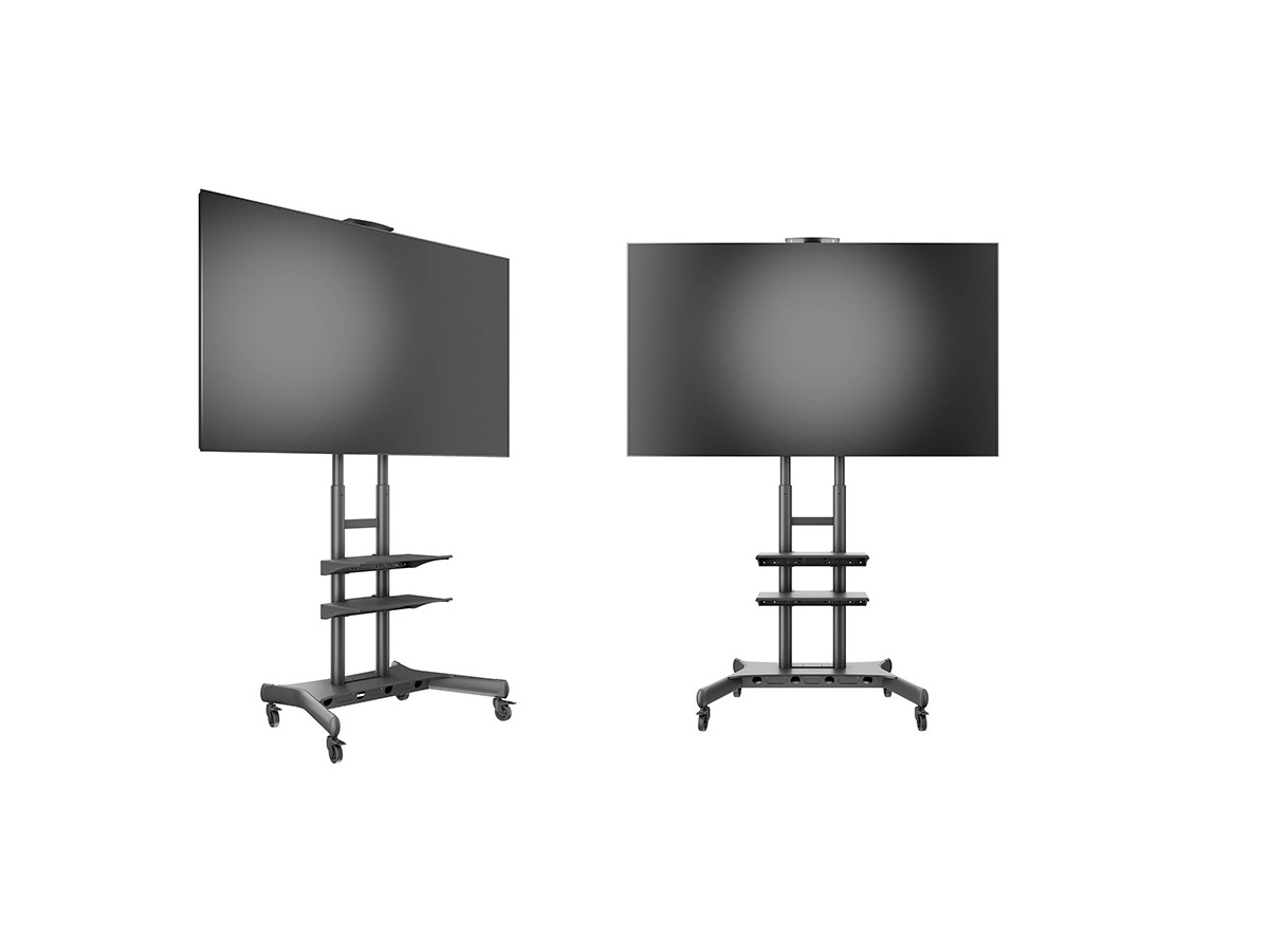 Easy screen height- adjustment, and mobility mean that an optimal viewing position can always be achieved for any presentation, digital -signage or video-conference situation. The heavy -duty wheels feature a safety- brake, ensuring the Stand cannot roll out of position, whilst the Integrated cable- management system ensures a tidy and professional look.