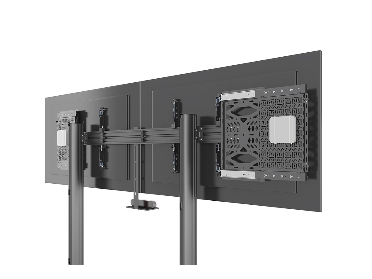 Multibrackets Pro Series solution for integrating a storage tray behind the display. Our M Pro Series Media Storage panel is a component storage slide out panel that facilitates easy access and concealed mounting of AV equipment behind displays. Now AV equipment can be accessed withoth the need to remove the display.