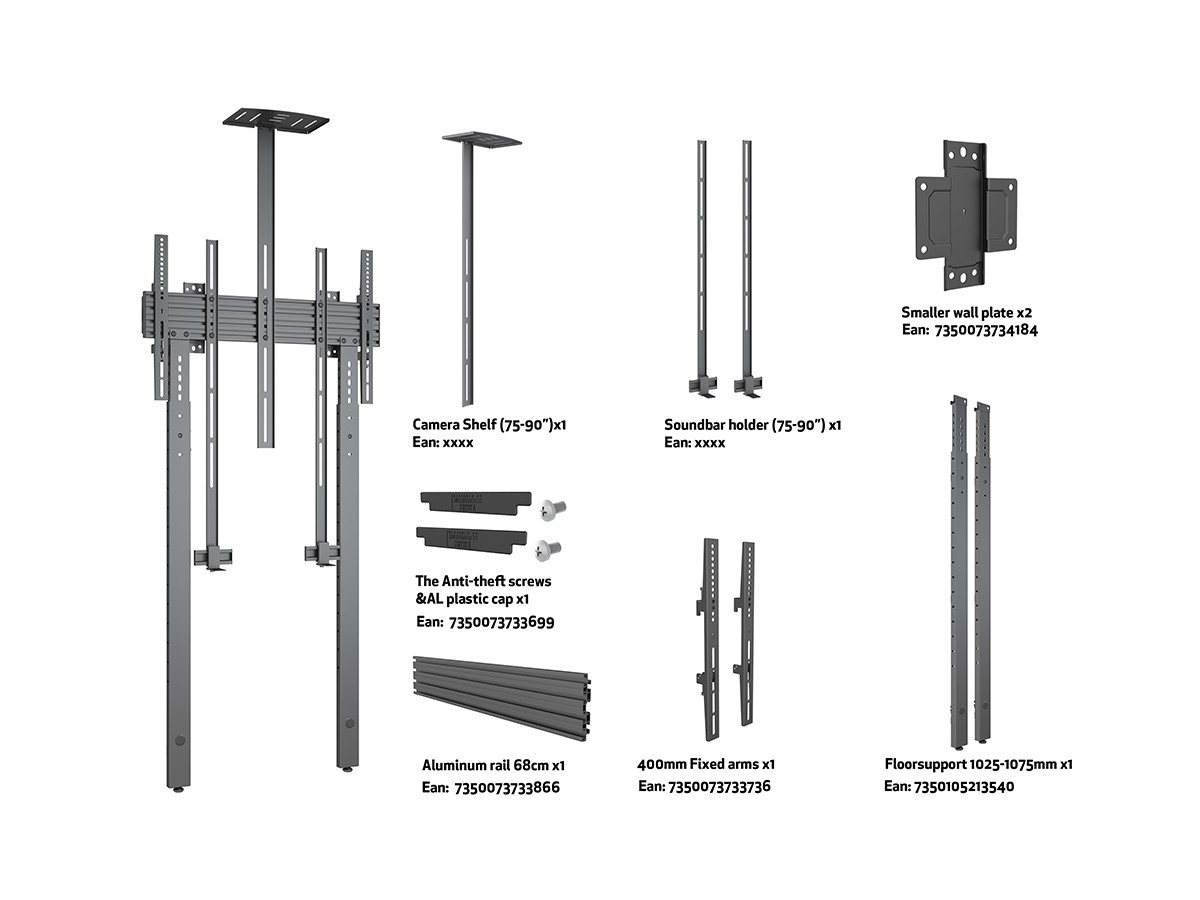 Product code:M Pro Series - Collaboration - Wallmount Fixed MBW1U Fixed - with Floorsupport 1025-1705mm - Wall mount for displays, Modular design, steel, single screen, single side, fixed, VESA Max 400x400 - screen size: 32"-75" - black