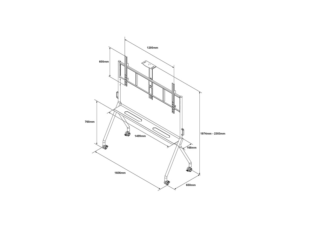 Perfect for use in education; classrooms, lecture theatres, or in commercial environments, Floorstand Basic features a large and stable base with four robust wheels . You can now move your valuable display safely and easily from room to room with smooth passage through doorways and over thresholds.