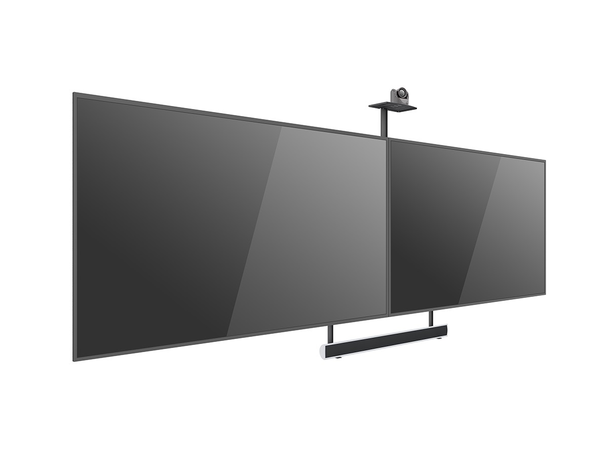 Create a meetingroom solution. Poly, Logitech and Yealink are a few of the popular meetingroom brands for cameras and or videobars that can be used with ths camerashelf (always check weight and measurements). Attach the camera solution over or under the display.