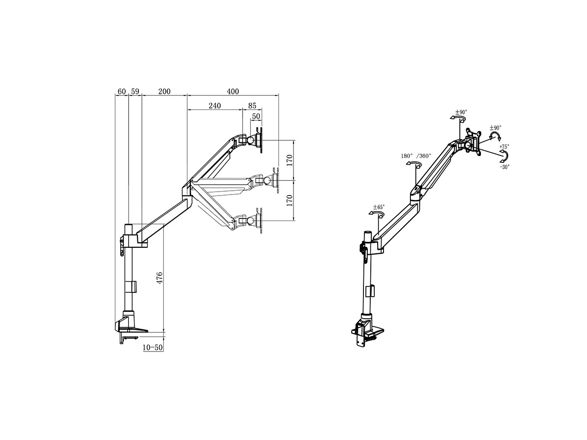 A double jointed gas suspended monitor arm, designed by Multibrackets to optimize your productivity and help reducing strain on neck, back and eyes.