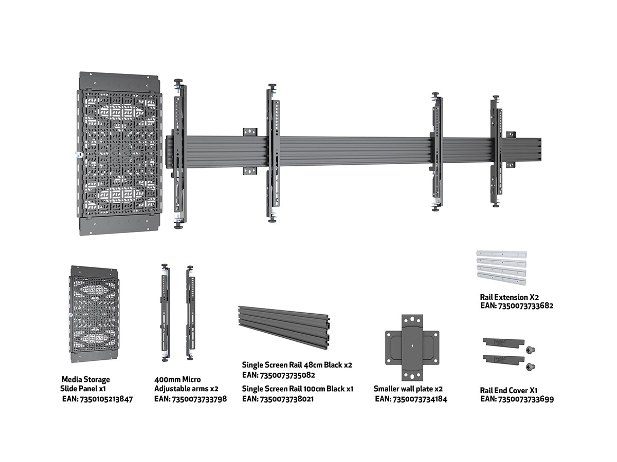 M Pro Series Wallmount MBW2U Media Storage is a compatbile with the M Pro Series Wallmounts.