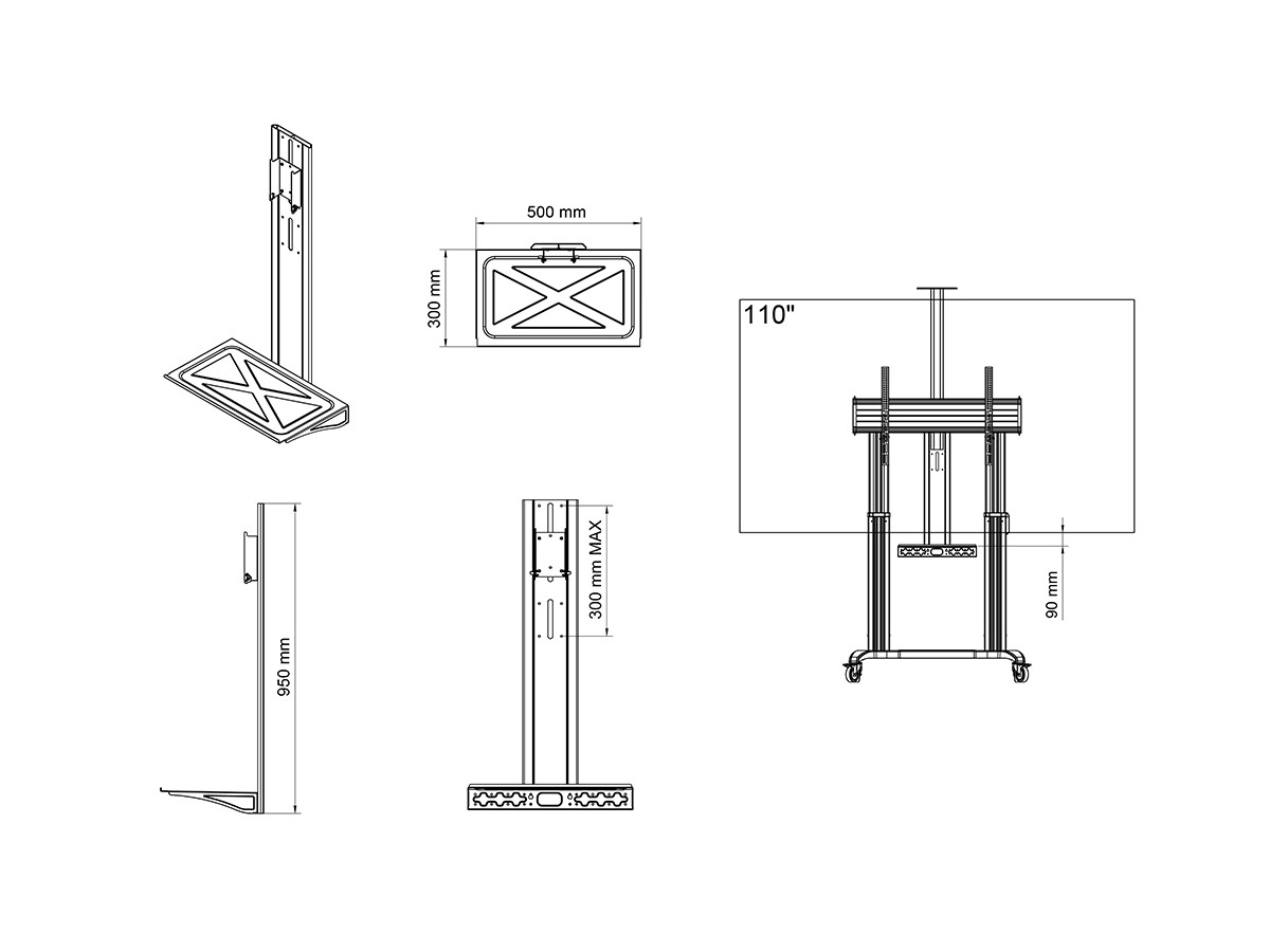 Product code:M Motorized Public Floorstand Shelf Dual Pillar 180 HD - Shelf for personal computer / mediaplayer / accessories - steel - black - floor stand mountable