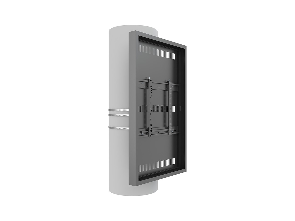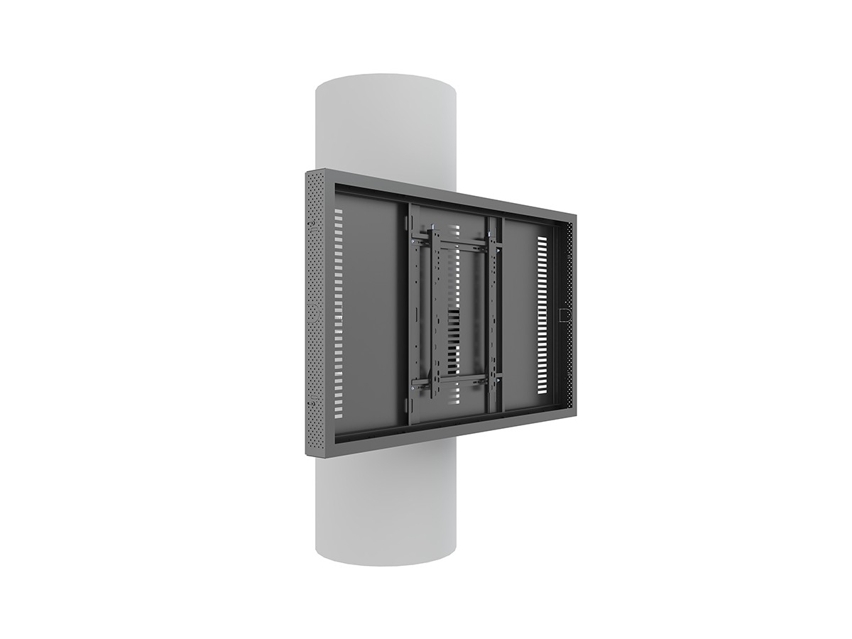 This clean styled black Pro Series Enclosure 55” Column brings new flexibility to the digital signage enclosure market while maintaining a sleek aesthetic to complement a variety of environments and different diameters of columns. A depth-adjustable exterior frame allows for a variety of displays to be used. Reversible hinges help avoid installation and service obstructions, and the exclusive design. Depth-adjustable exterior frame. Unparalleled service and maintenance access. Integrated passive cooling vents with active thermal management options. Designed to compensate for uneven walls, keeping front of frame flat. Tamperproof security hardware protects technology investments. Tool-free on-wall storage with Middle Atlantic's Lever Lock technology.