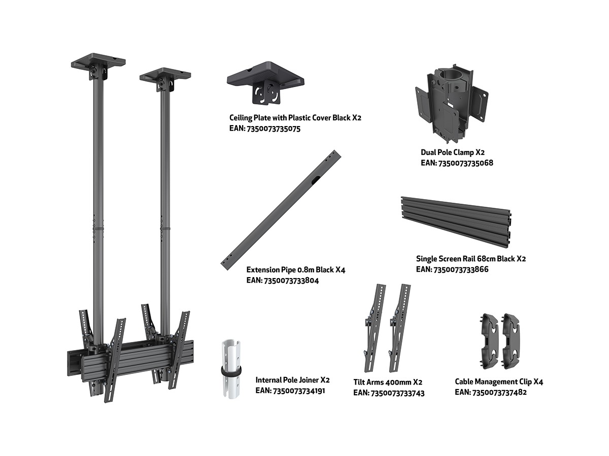 Product code:M Ceiling Mount Pro MBC1UX2SD 600 - Ceiling mount for LCD display, steel, 1.5m length, 1 screen, single side, tilt arms, VESA Max 600x400 - screen size: 40"-100" - black