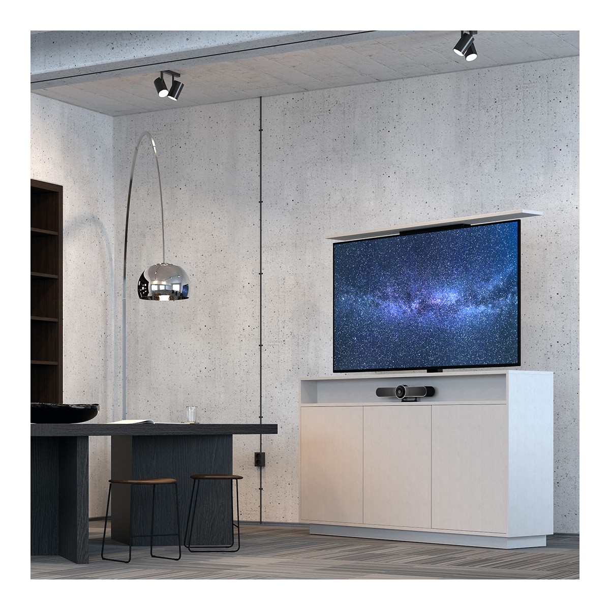 Combined with a videobar and your computer this solution together with Teams, Skype, Zoom or other video communications software’s you now have a movable meeting room station. This is a complete solution for almost any situation creating ease of use and will save significant values by being used in multiple locations. Your always ready to meet wherever you are within the building.