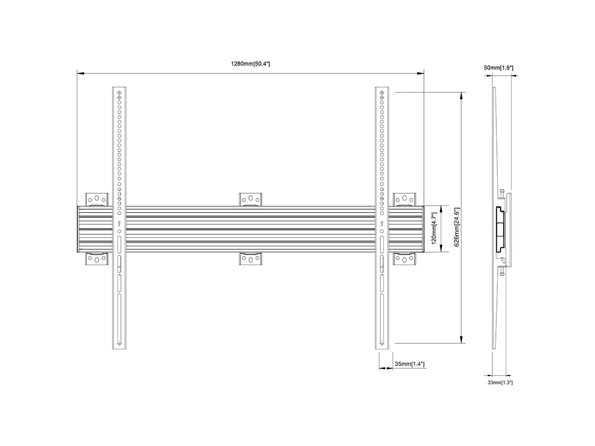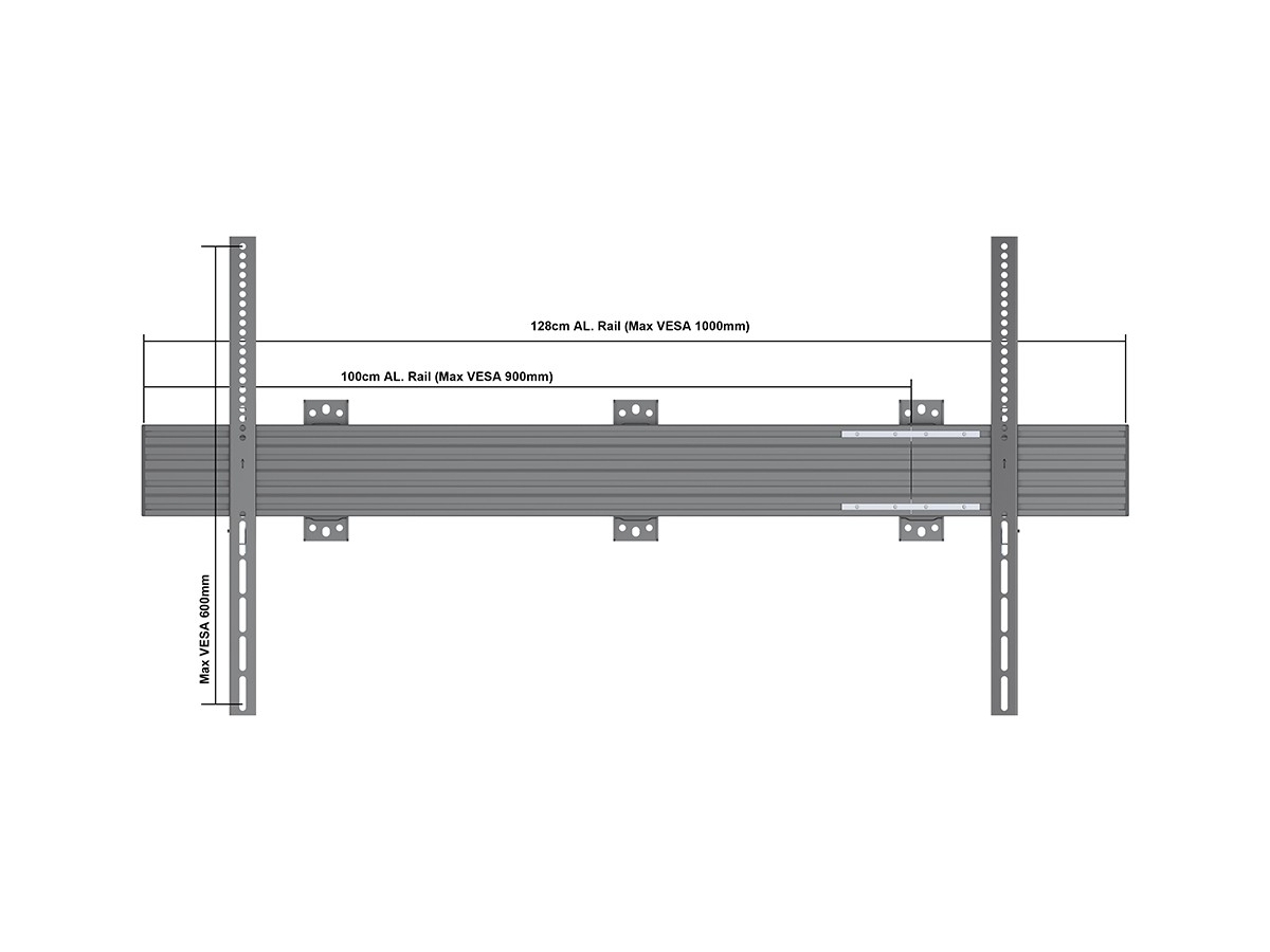 The new professional Pro Series A/V line from Multibrackets was designed with the installer in mind. Modular, easy to configure, quick to install, and simple to maintain. Working closely with installers we created a range with close to unlimited flexibility. This model is no exception. The product provides the versatility and flexibility demanded by installers. Based upon the Pro Series strong and ultra-flexible aluminum rail it is completely modular and has built in cable management throughout the entire solution to quicken installation and creating an esthetic result worth the public eye.