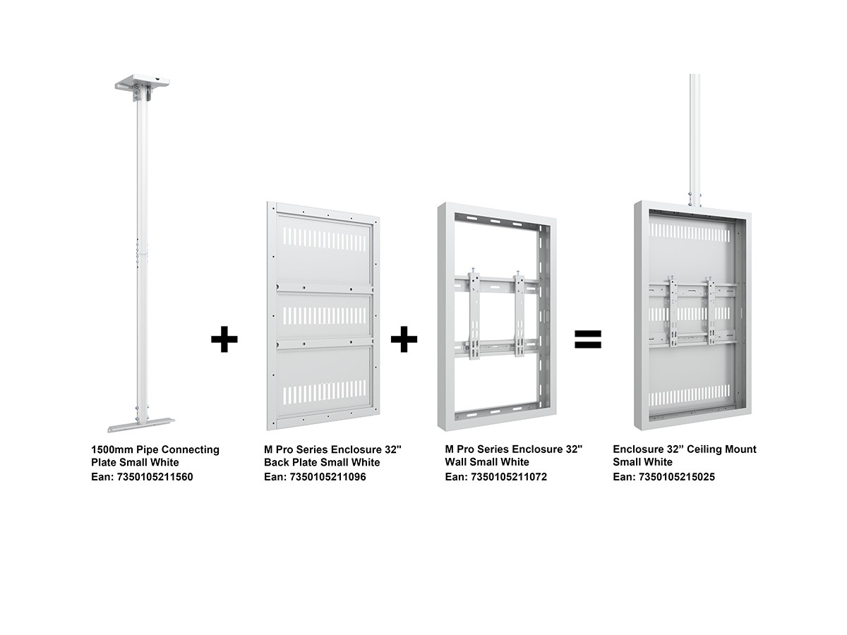 The M Pro Series Enclosure 32" Ceiling Small White. A well-designed casing /enclosure. Creating a minimalistic look and possible to mount in both Portrait or Landscape position this casing from Multibrackets® is one of the most versatile to date. Choose between screen sizes and colors. The casing includes after adjustment possibilities and can be used for most brands of signage displays on the market. With a smart thermal management, this solution can fit more brands as well as creating thermal management second to none.