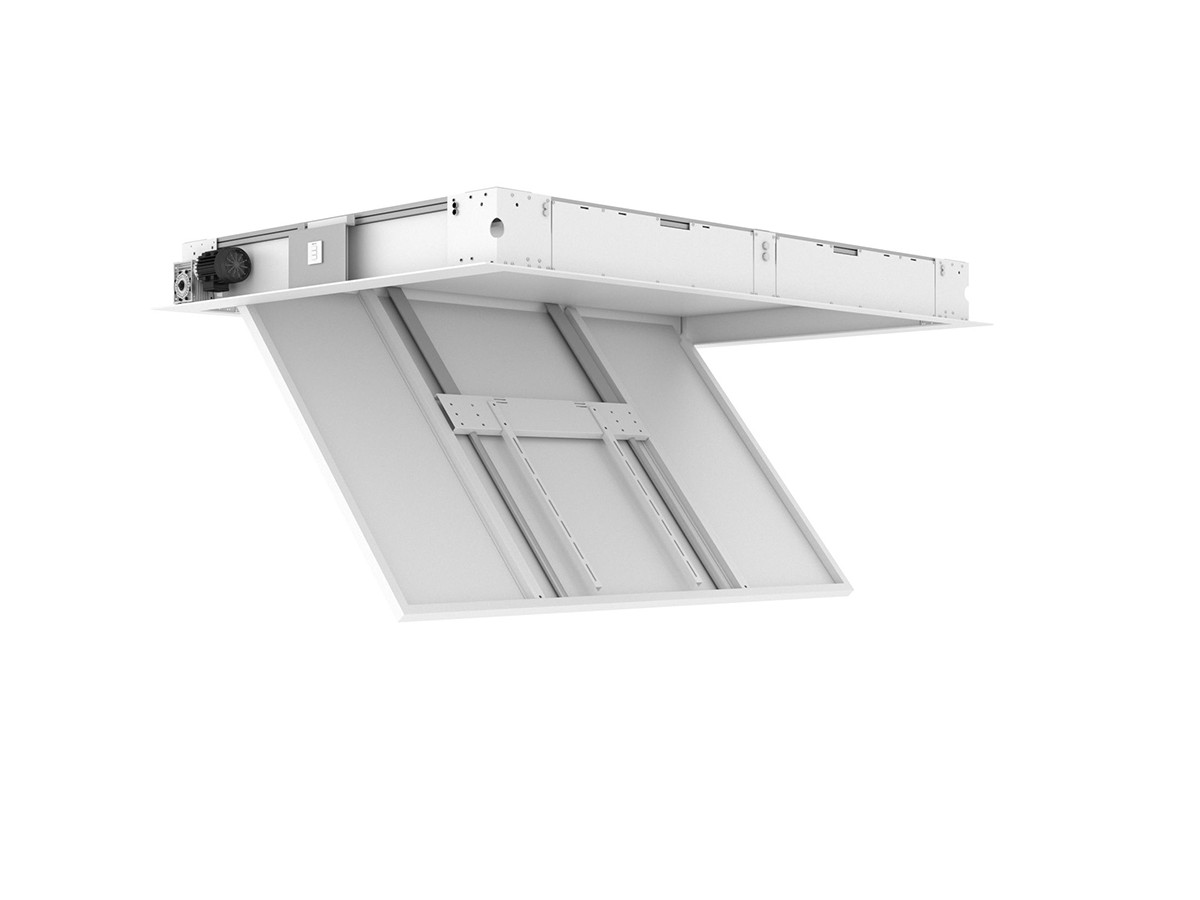 M Motorized Ceilingmount Inverted w/lid 65"-86" is a hidden motorized ceilingmount optimized for displays between 65" and 86” size. ideal mount for your TV installation when in need of the. Often placed in bedrooms, kitchens, offices, schools or stores it can fold your screen down or up -108° - 0°. This under the cabinet/ ceiling mount includes a locking system to keep the screen in position and is a very practical solution supporting screens both smaller and larger.