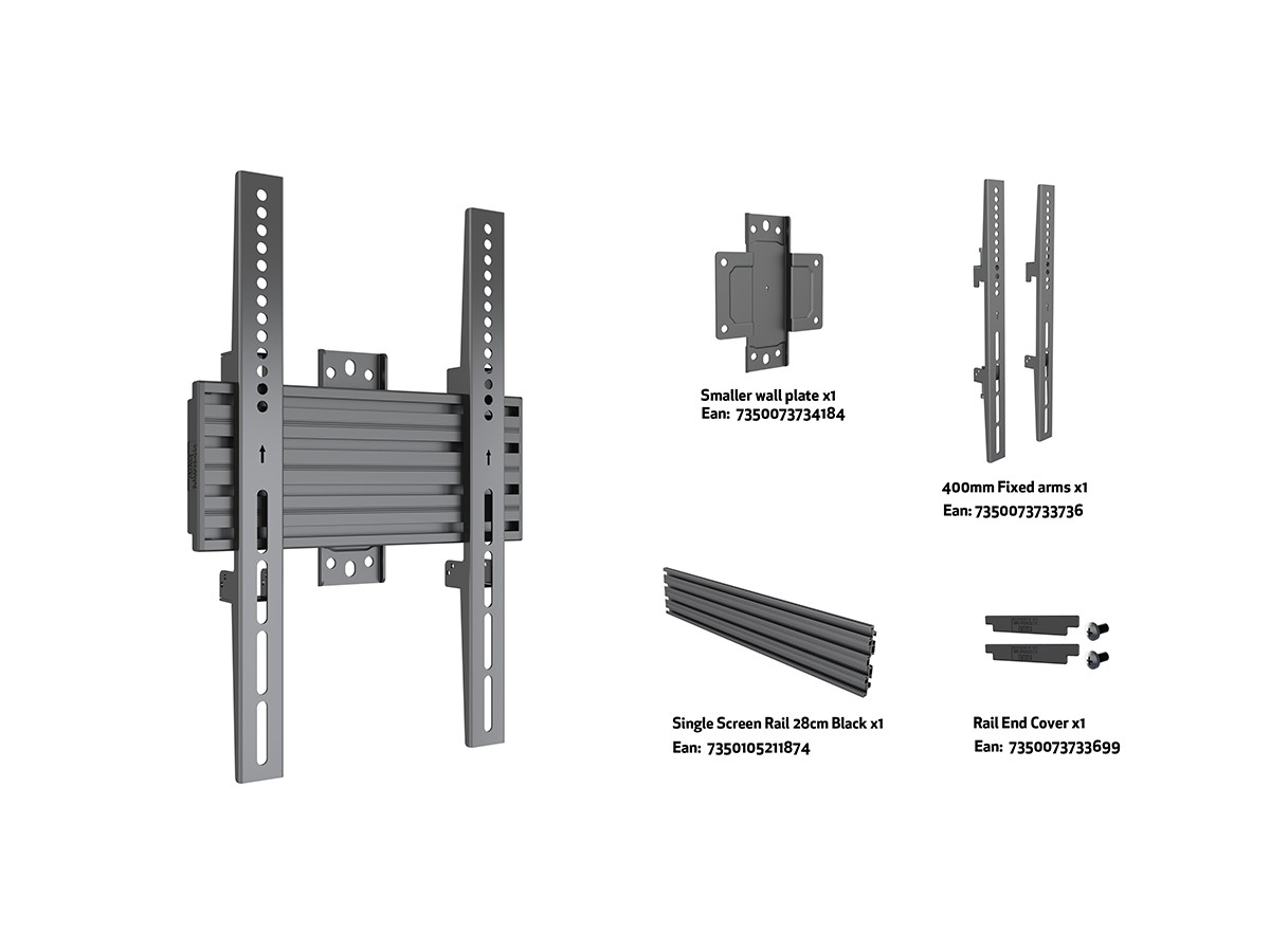 Product code:M Wallmount Pro MBW1UP 200x400 Fixed Black - Wall mount for LCD display, steel, 1 screen, single side, fixed, VESA Max 200x400 - screen size: 40"-100" Stretched - black