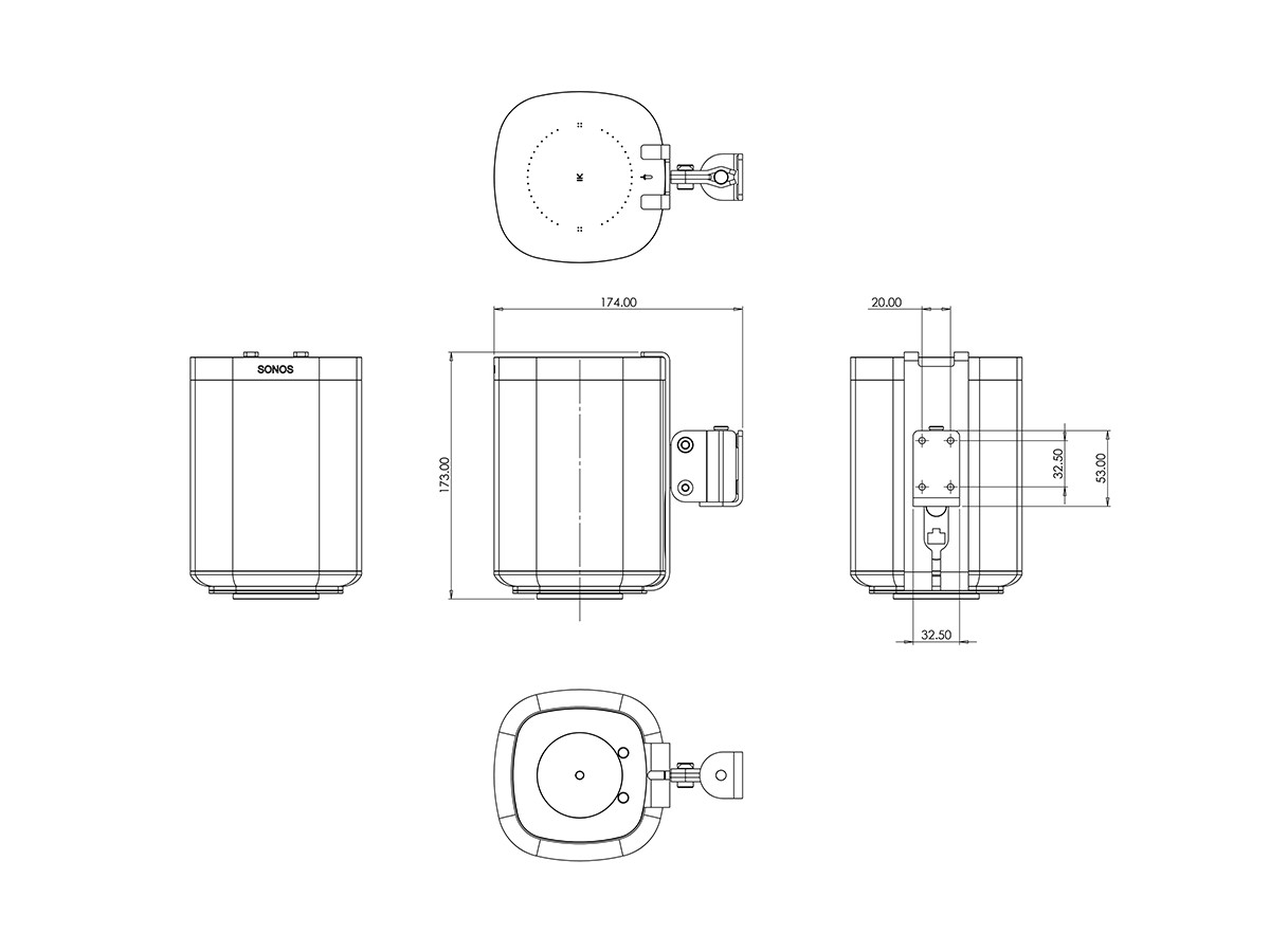 Compatible with the Sonos One (Gen 1 and 2), One Sl and Play:1 models. Providing 20 degrees of tilt movement and 90 degrees of left and right motion, this aesthetically looking mount secures the speaker safely while the acoustic pad enhances the sound performance. Easy to assemble and install in a variety of spaces around your home, mount your speakers at any height and benefit from 90° of left and right rotation and neatly hidden cables.
