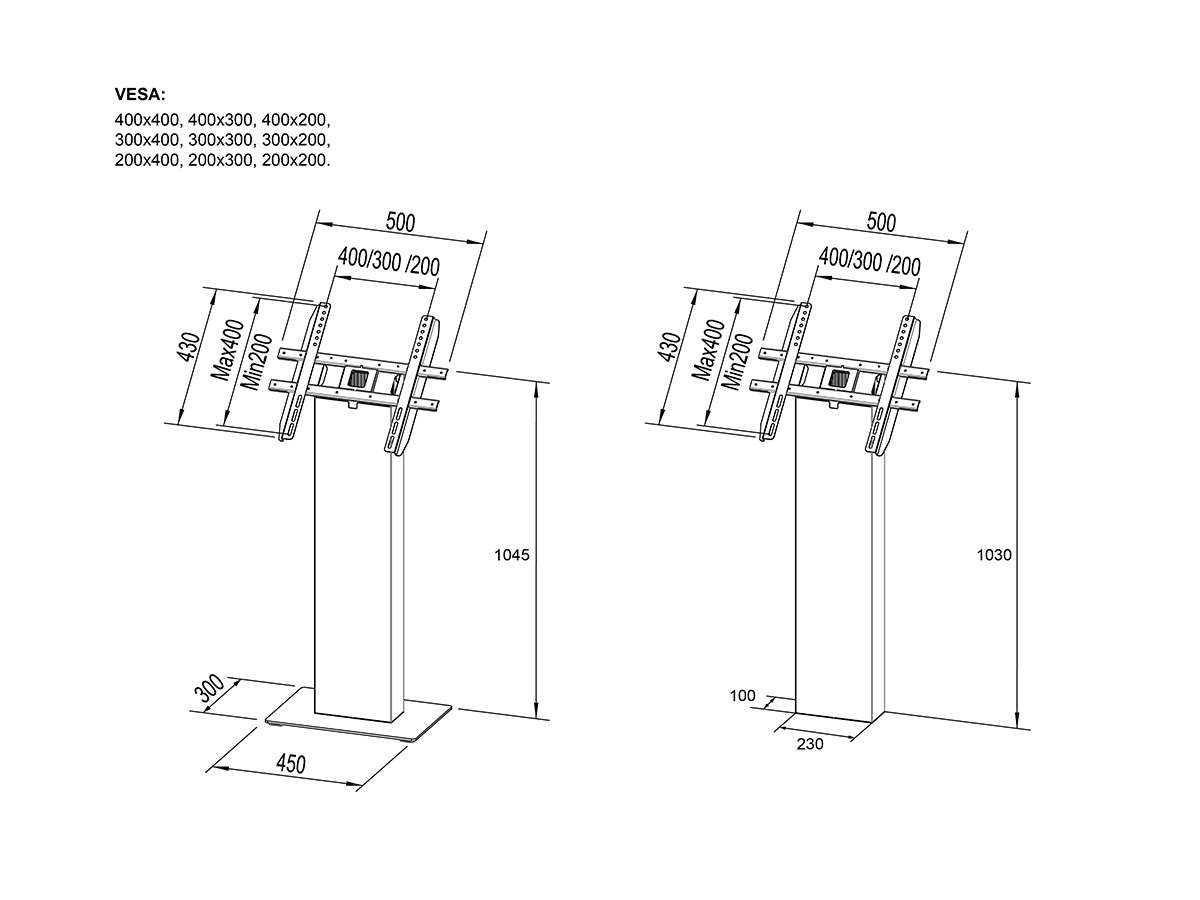 | Universal & VESA standard: | 75, 100, 200, 300, 400 mm |