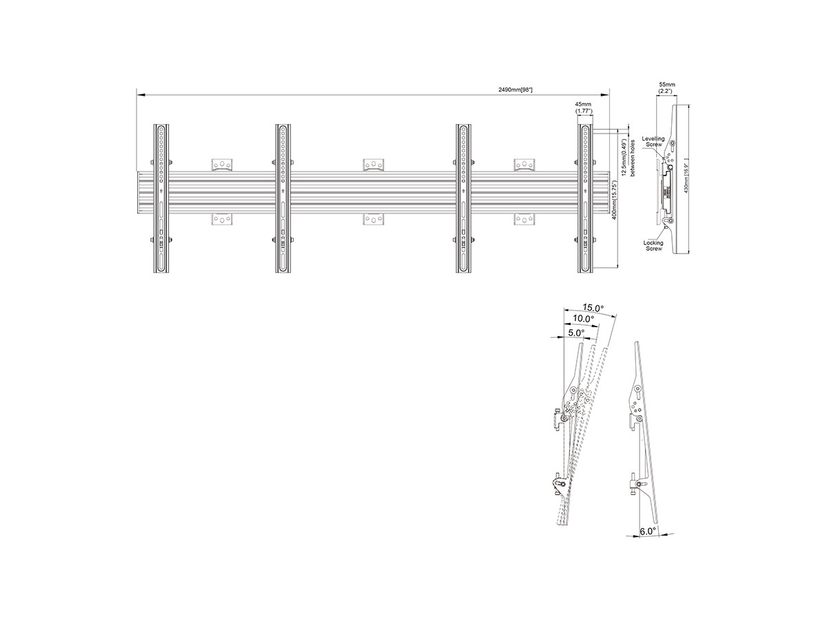| Universal & VESA standard: | Adjustable from 100x100 to 600x400 max Optional VESA 800x600 |