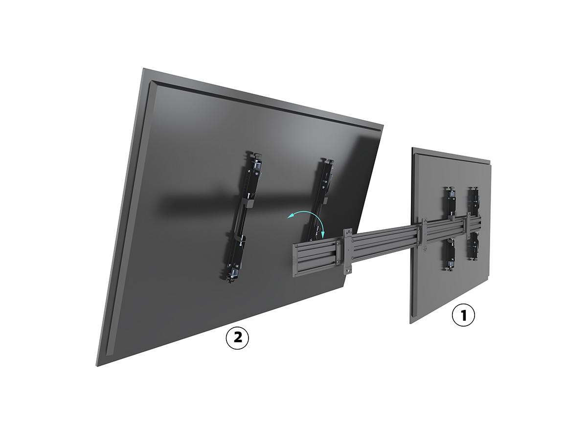 Micro adjustable wallmounts also creates easy-access to a display to quick and safe serviceability for sensitive screens with mm precision. This is often one of the major functions needed when building a video wall mounting solution or when integrating a single screen into the wall.