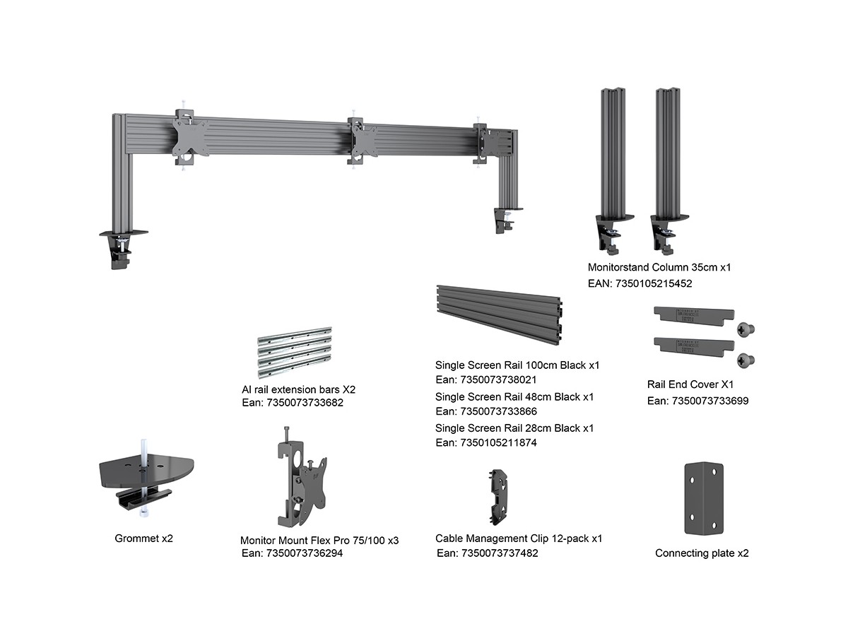 M Deskmount Column Pro 3x1 MBDM3x1U is a product made for installing desktop mount on a rail based solution. This setup enables you to adjust your multiple monitors on both height and sideways to increase ergonomic variance of your desk and to increase productivity.