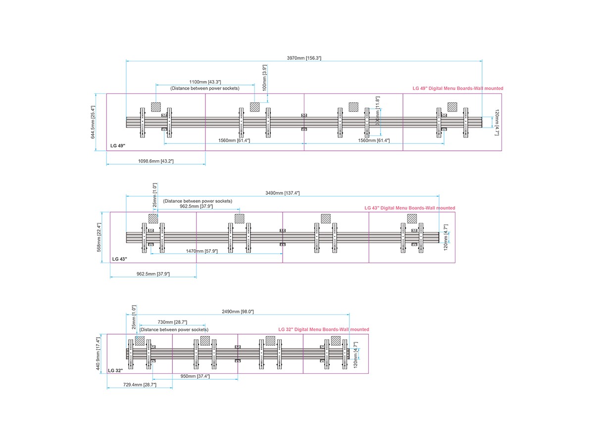 The new professional Pro Series A/V line from Multibrackets was designed with the installer in mind. Modular, easy to configure, quick to install, and simple to maintain. Working closely with installers we created a range with close to unlimited flexibility. This model the M Menu Board Wall Mount Pro MBW4X1U VESA 300 is no exception. The product provides the versatility and flexibility demanded by installers. Based upon the Pro Series strong and ultra-flexible aluminum rail it is completely modular and has built in cable management throughout the entire solution to quicken installation and creating an esthetic result worth the public eye.