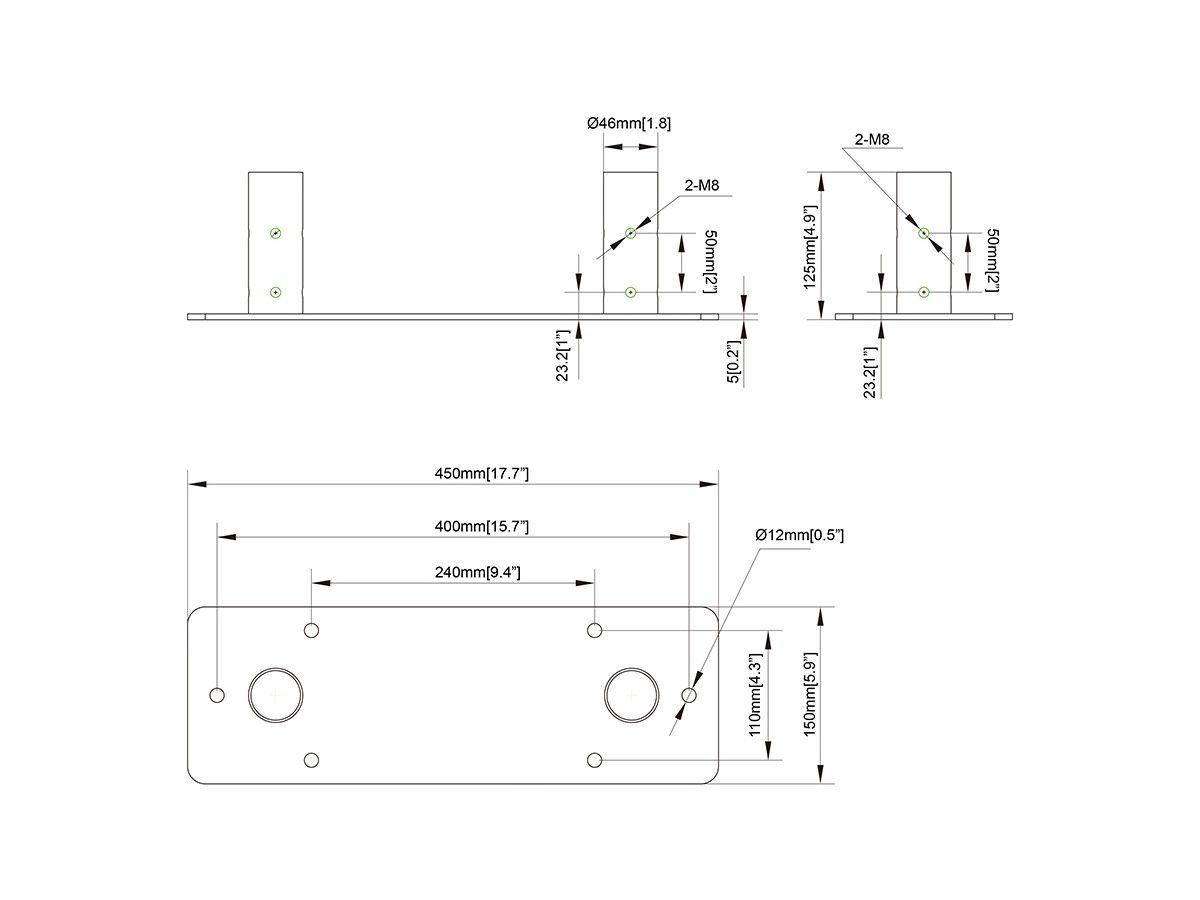Product code:M Pro Series - Bolt Down Dual Pole Plate - Mounting component - steel - black