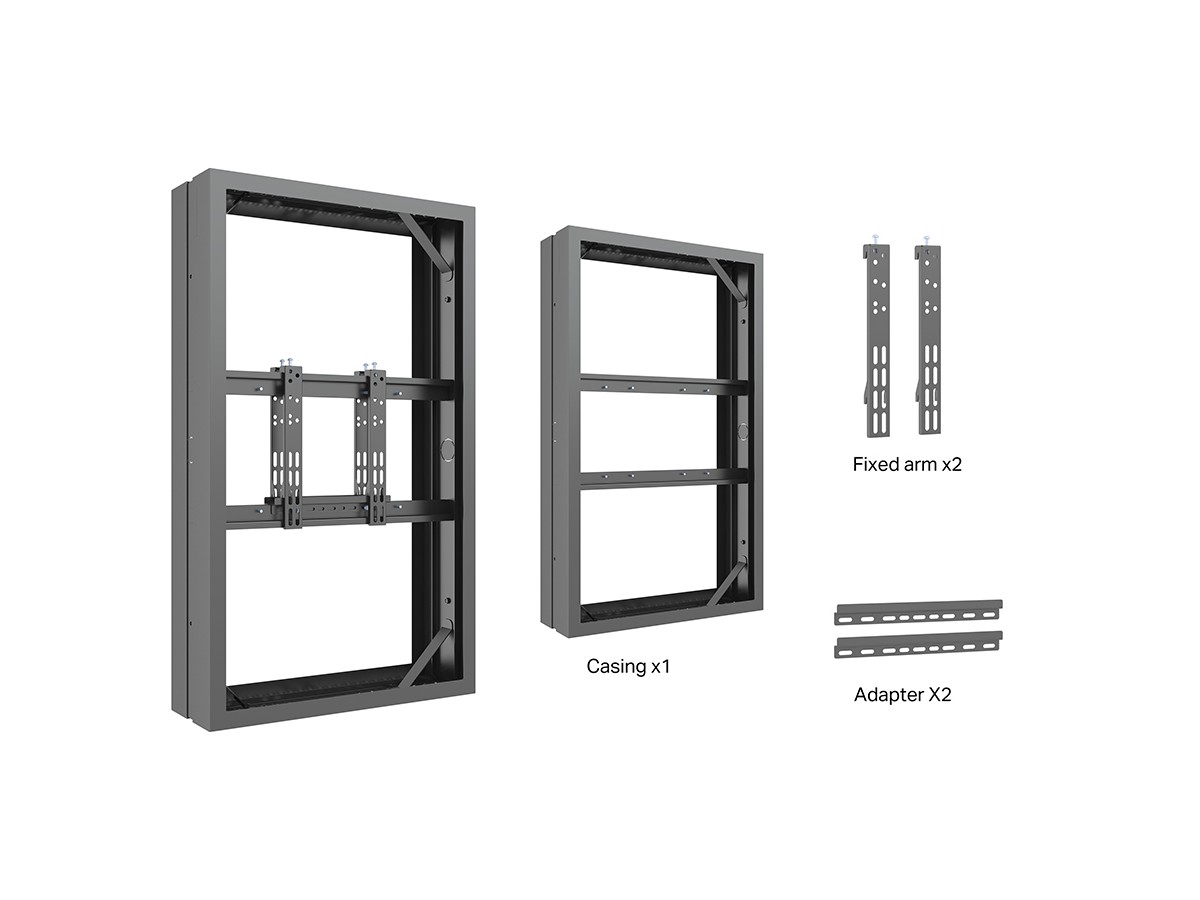 This clean styled Pro Series Enclosure brings new flexibility to the digital signage enclosure market while maintaining a sleek aesthetic to complement a variety of environments. A depth-adjustable exterior frame allows for a variety of displays to be used. Reversible hinges help avoid installation and service obstructions, and the exclusive design. Depth-adjustable exterior frame. Unparalleled service and maintenance access. Integrated passive cooling vents with active thermal management options. Designed to compensate for uneven walls, keeping front of frame flat. Tamperproof security hardware protects technology investments.
