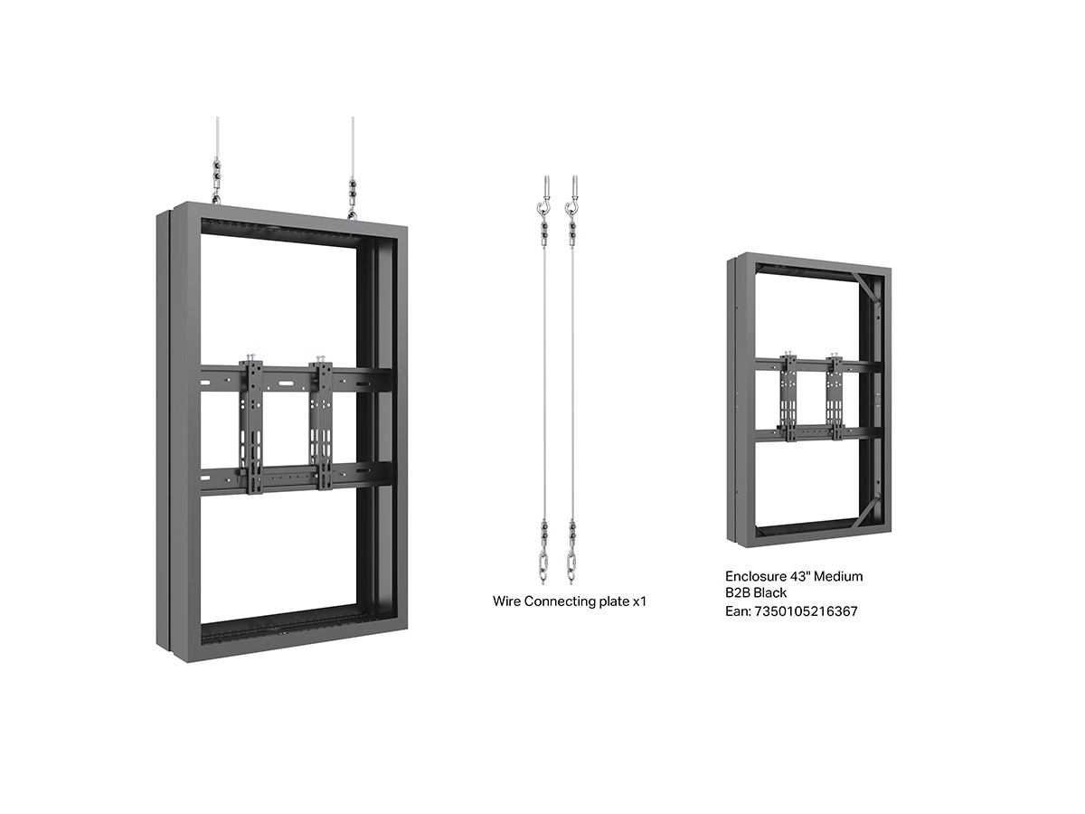 The M Pro Series Enclosure 43" Wire Medium B2B Black. A well-designed casing /enclosure. Creating a minimalistic look and possible to mount in both Portrait or Landscape position this casing from Multibrackets® is one of the most versatile to date. Choose between screen sizes and colors. The casing includes after adjustment possibilities and can be used for most brands of signage displays on the market. With a smart thermal management, this solution can fit more brands as well as creating thermal management second to none.