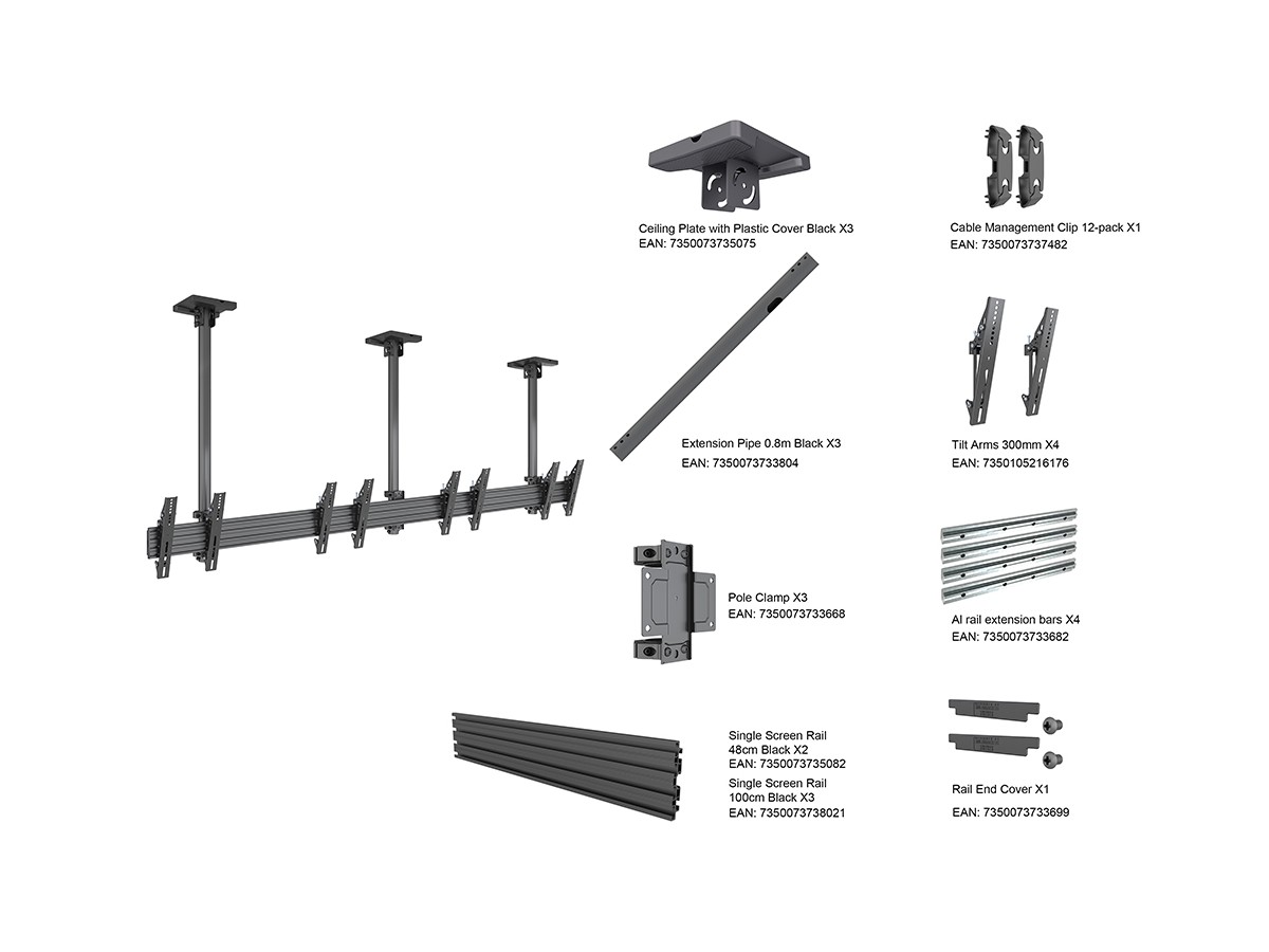 Multibrackets M Menu Board Mount Pro MBC4X1U VESA 300 is our innovative - ready to be installed Single-Row Display Ceiling Mount.