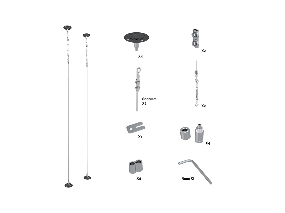 The M Pro Series - Wire Kit 6000mm creates a possibility to mount the display and enclosure between floor and ceiling with discreet, yet safe solution.