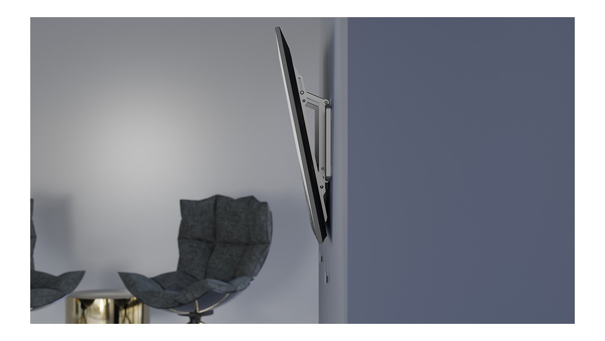 The Multibrackets M Universal Wallmount Tilt Medium is a low profile tilt wall mount for 32" - 65" flat-panel TVs up to 50 Kgs. Its flush design allows it to sit just 23mm from the wall focusing looks on your TV and not the mount. Its solid construction of steel is both strong and durable. After installation the TV can slide left and right on wall plate after mounting and thus give the end-user a possibility to perfect position the TV after installing it. The quick release straps on the mounting brackets stays hidden with Multibrackets Smart magnet system, but are when needed easily pulled down to unlock the TV from the wall plate for cable access.