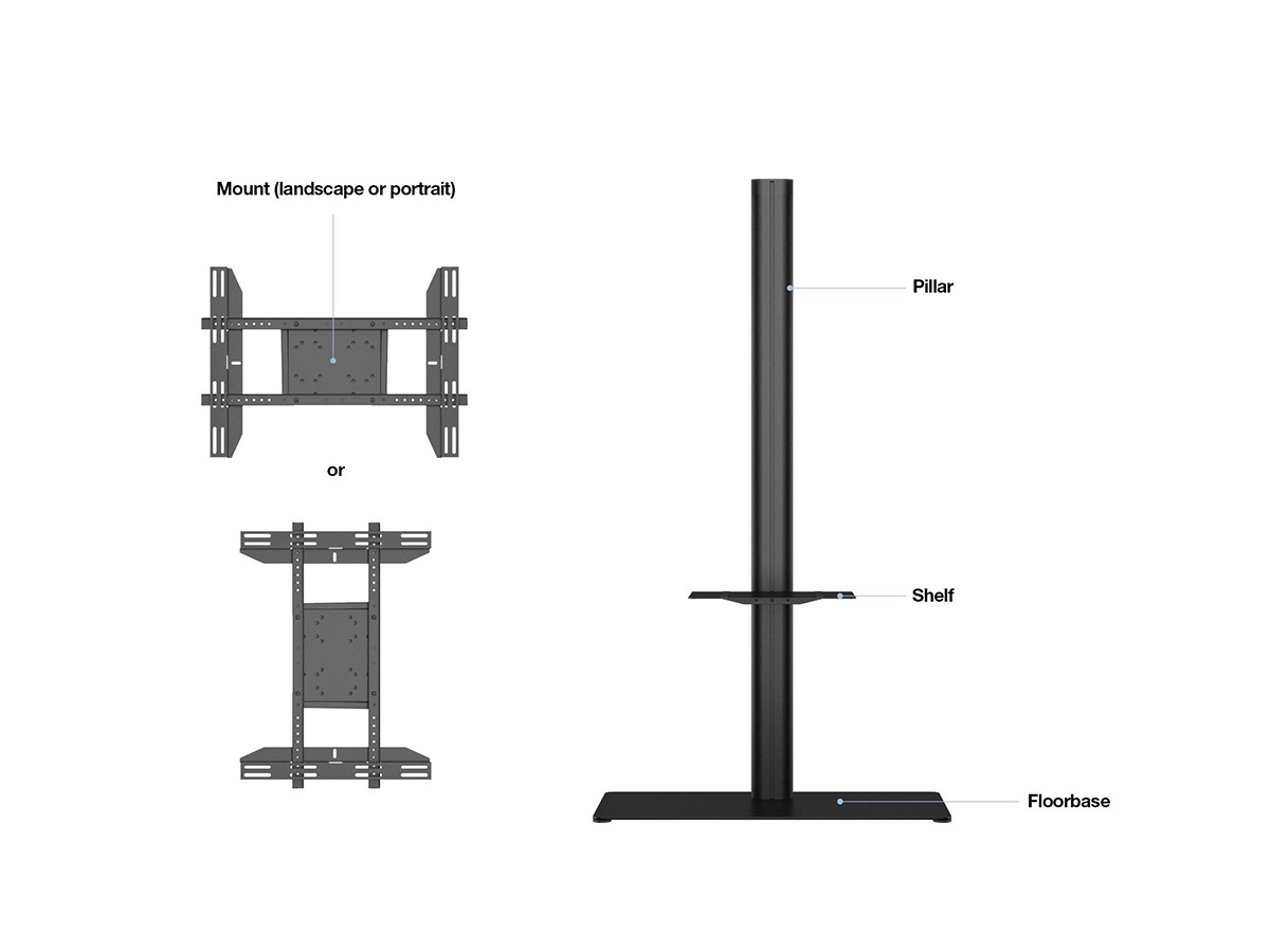 | Accessories: | Works with most M Public Display Stand Accessories. |