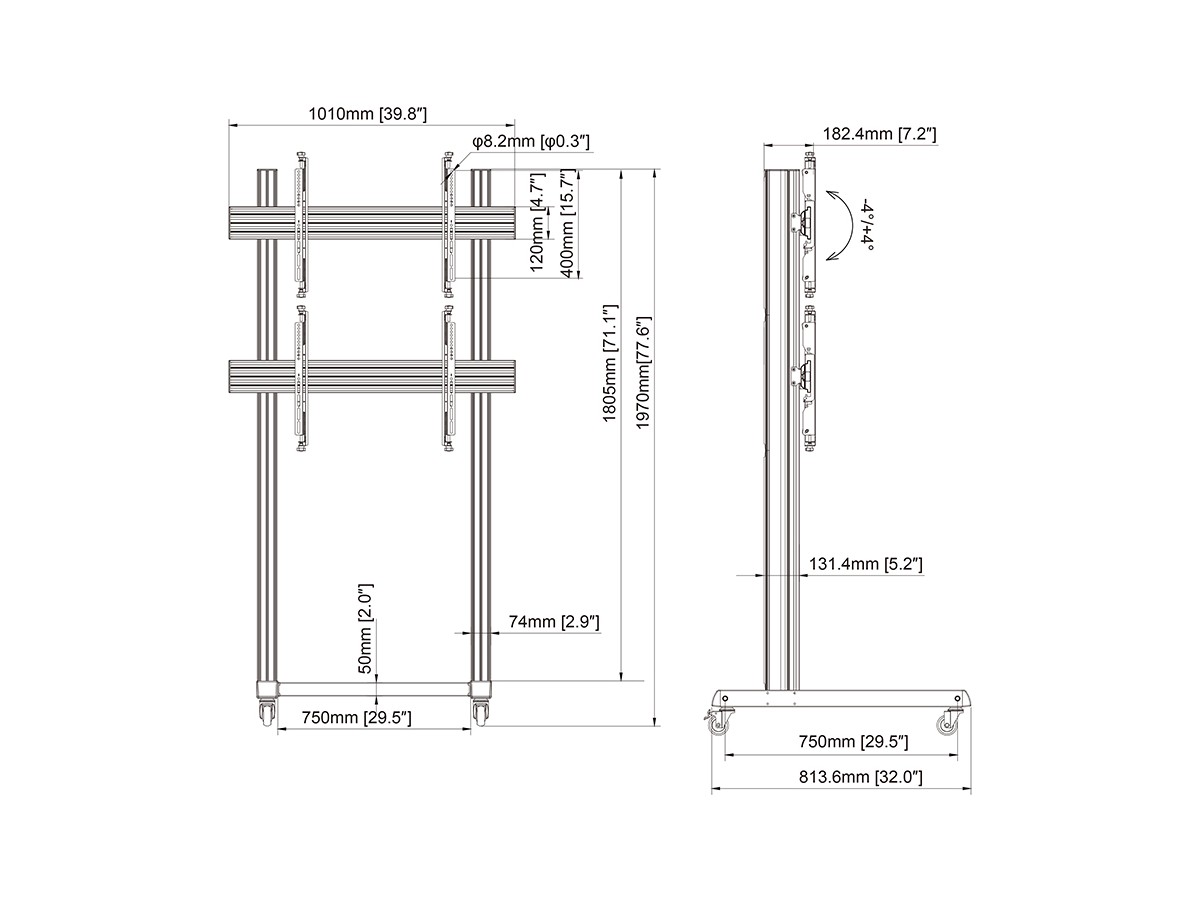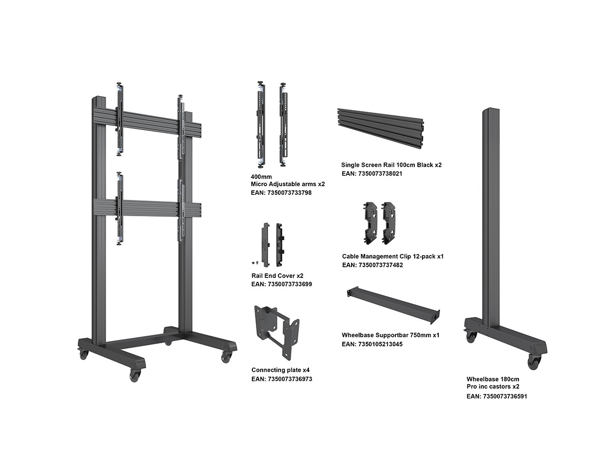 Product code:M Pro Series - Video Wall Stand 1X2 - Stand for 1x2 displays - aluminum - black - screen size: 46" - 75" - mounting interface: up to 1000 x 400 mm - floor-standing - wheelbased