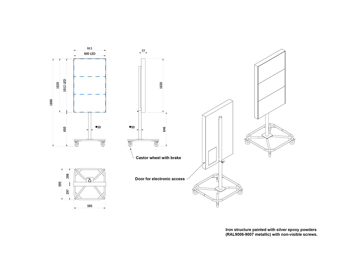 This Quadpod has built in wheels so they are easy to move around. Place them one by one or put them together to operate them as one large signage wall.