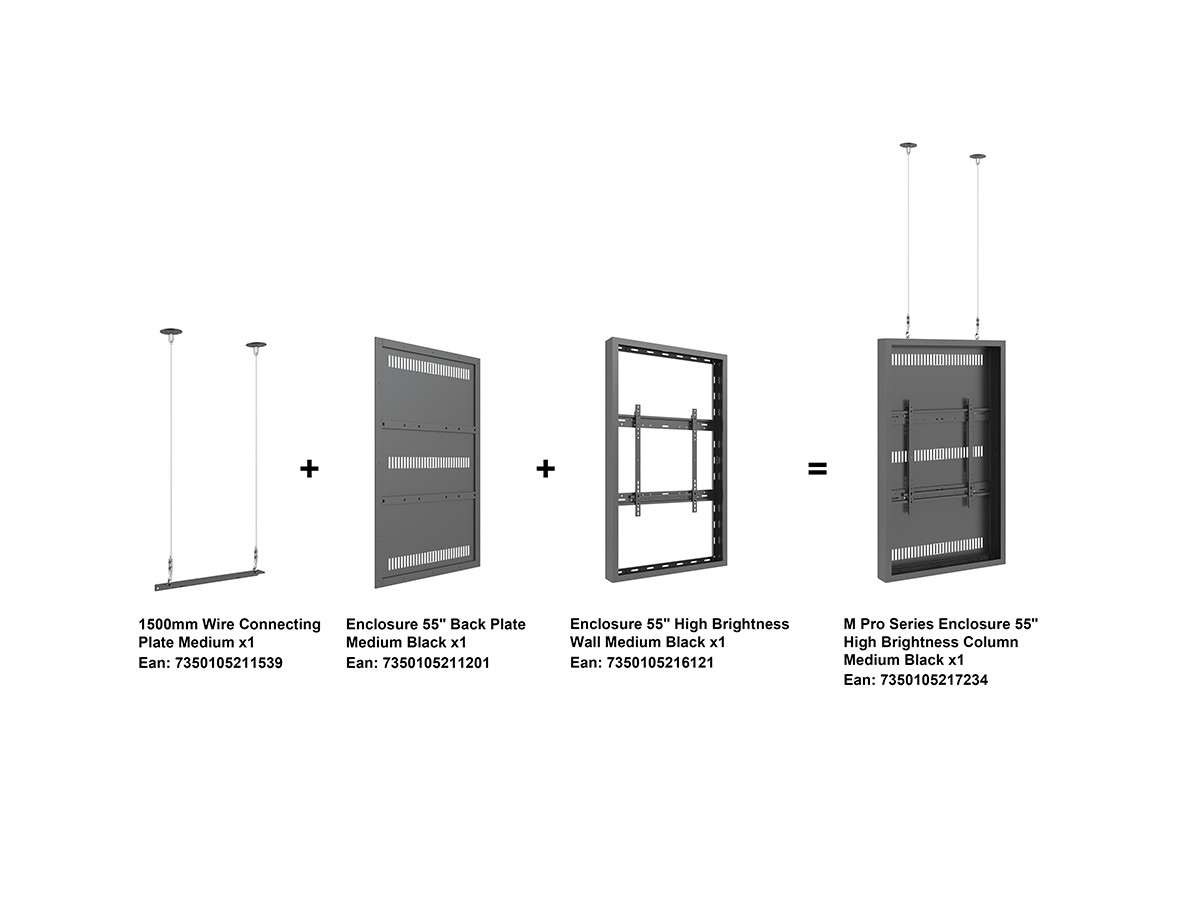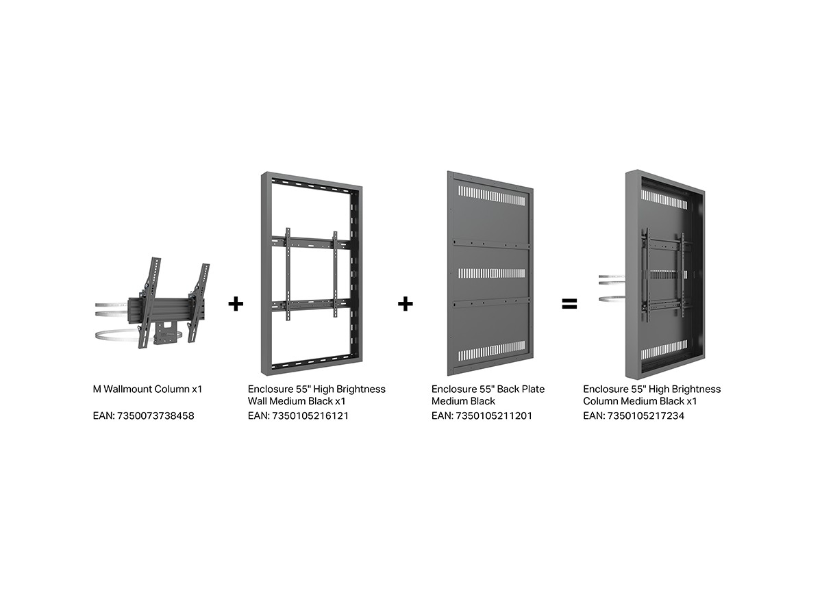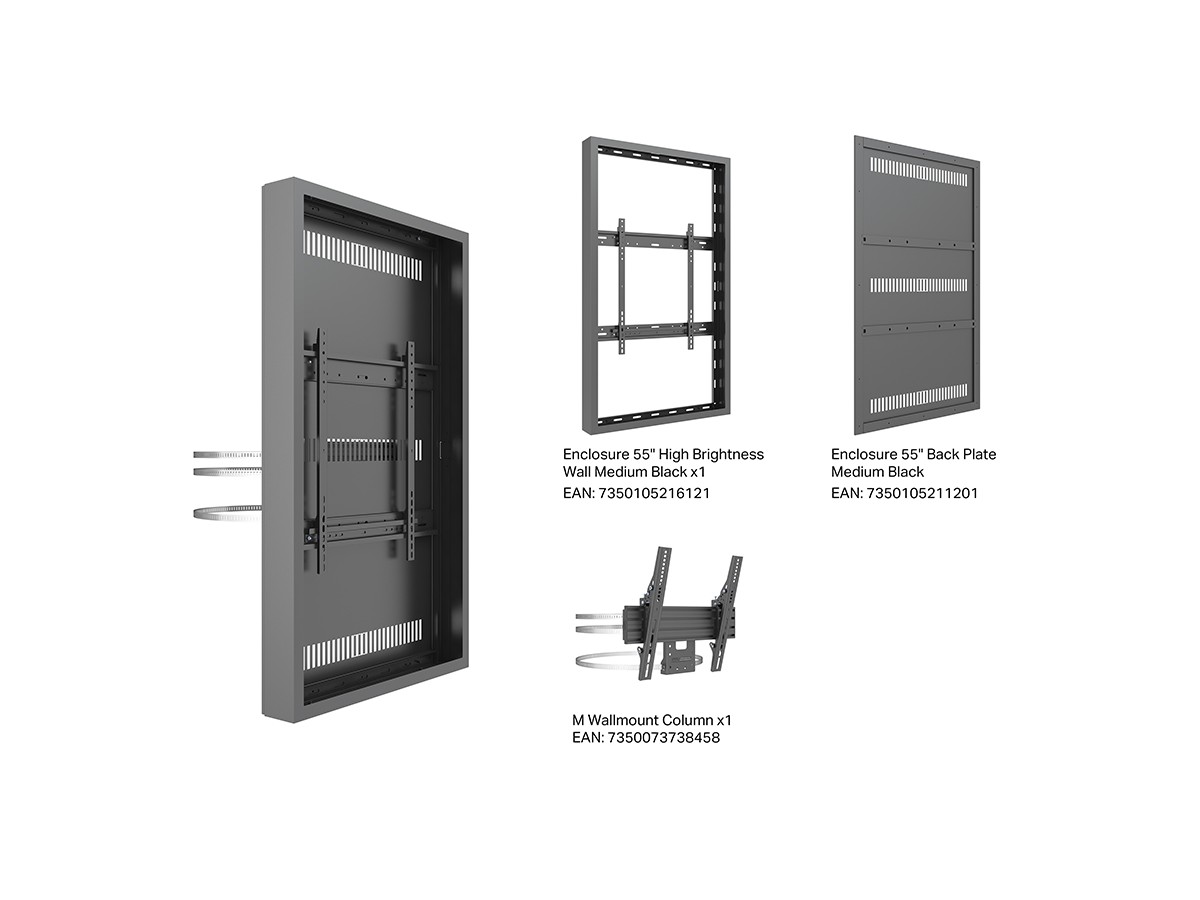 The M Pro Series Enclosure 55" High Brightness Column Medium Black. A well-designed casing /enclosure. Creating a minimalistic look and possible to mount in both Portrait or Landscape position this casing from Multibrackets® is one of the most versatile to date. Choose between screen sizes and colors. The casing includes after adjustment possibilities and can be used for most brands of signage displays on the market. With a smart thermal management, this solution can fit more brands as well as creating thermal management second to none.